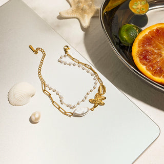 ステンレス304 低ニッケル 水に濡れても錆びにくい 18Kゴールドメッキ ブレスレット シェル 貝殻 【YJ01291】