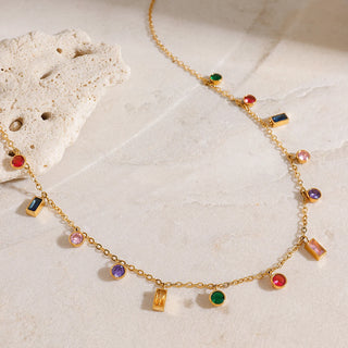 ステンレス304 低ニッケル 水に濡れても錆びにくい 18Kゴールドメッキ ネックレス チェーン ジルコニア 【YJ01256】