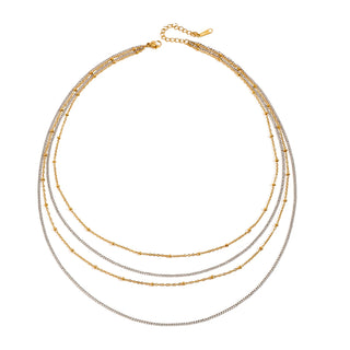 ステンレス304 低ニッケル 水に濡れても錆びにくい 18Kゴールドメッキ ネックレス 3層【YJ01197】