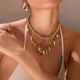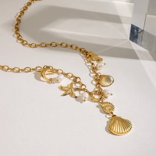ステンレス304 低ニッケル 水に濡れても錆びにくい 18Kゴールドメッキ ネックレス シェル 貝殻 【YJ01157】