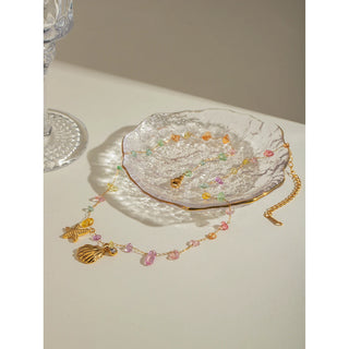 ステンレス304 低ニッケル 水に濡れても錆びにくい 18Kゴールドメッキ ネックレス シェル 貝殻 クリスタル 【YJ01245】