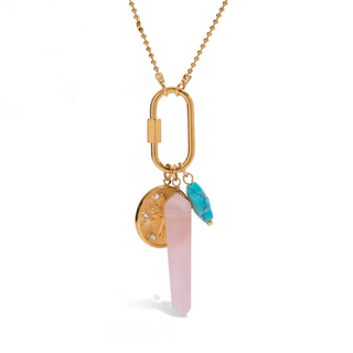 ステンレス304 低ニッケル 水に濡れても錆びにくい 18Kゴールドメッキ ネックレス 天然石風ストーン 【YJ01109】