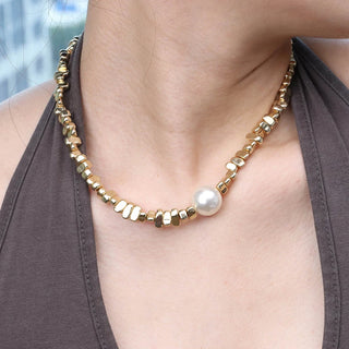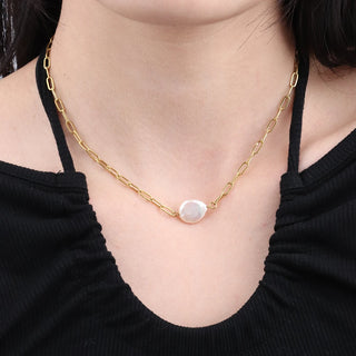 316Lサージカルステンレス ネックレス チャンキー チェーン パール【NY01241】
