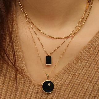 316Lサージカルステンレス 18Kゴールドメッキ ネックレス チェーン エナメル スクエア【NY01319】