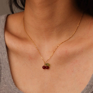 316Lサージカルステンレス 18Kゴールドメッキ ネックレス チェリー さくらんぼ【NY01233】