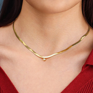 316Lサージカルステンレス 18Kゴールドメッキ ネックレス スネーク ジルコニア【NY01178】