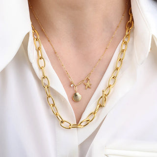 316Lサージカルステンレス ネックレス シェル 貝殻 マーメイド ラウンド【NY01220】
