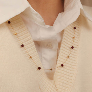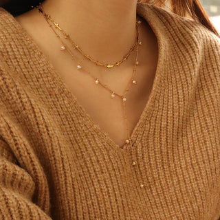 316Lサージカルステンレス ネックレス 2層 チェーン ビーズ【NY01162】