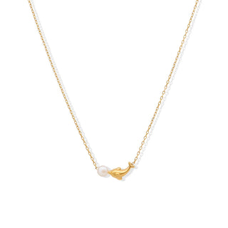 316Lサージカルステンレス 18Kゴールドメッキ ネックレス イルカ パール【NY01140】