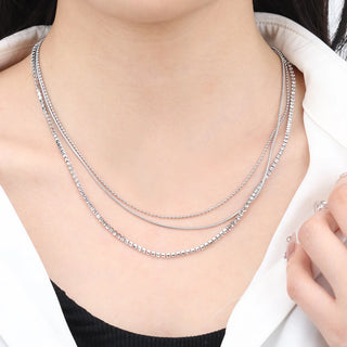 316Lサージカルステンレス ネックレス 3層 チェーン ジルコニア 【NY00836】
