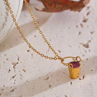 316Lサージカルステンレス 18Kゴールドメッキ ネックレス チェーン 天然石風ストーン オーバル【NY01021】