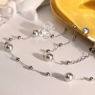 316Lサージカルステンレス ネックレス 2連 チェーン パール【NY00839】
