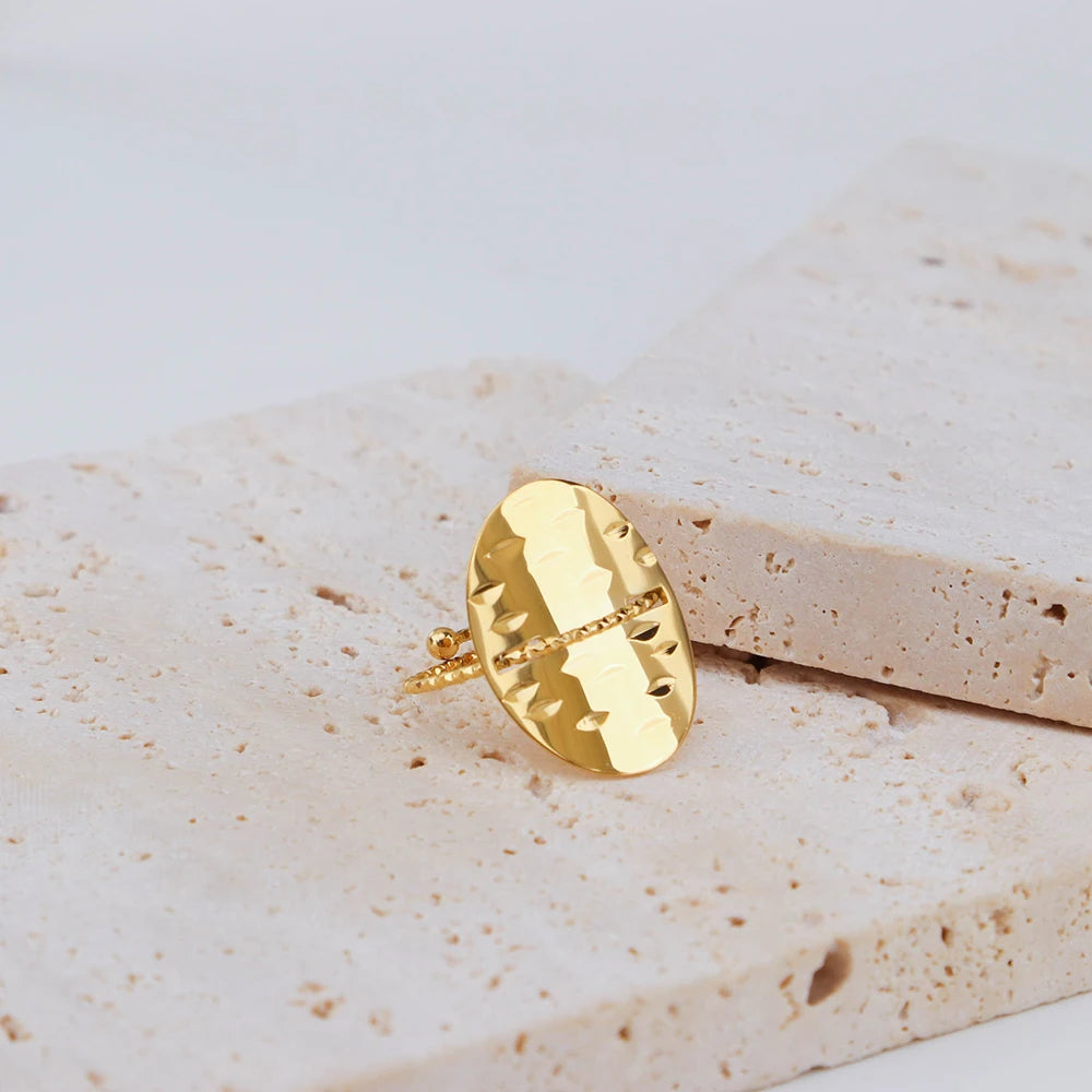 316Lサージカルステンレス 18Kゴールドメッキ リング オーバル 【NY00508】