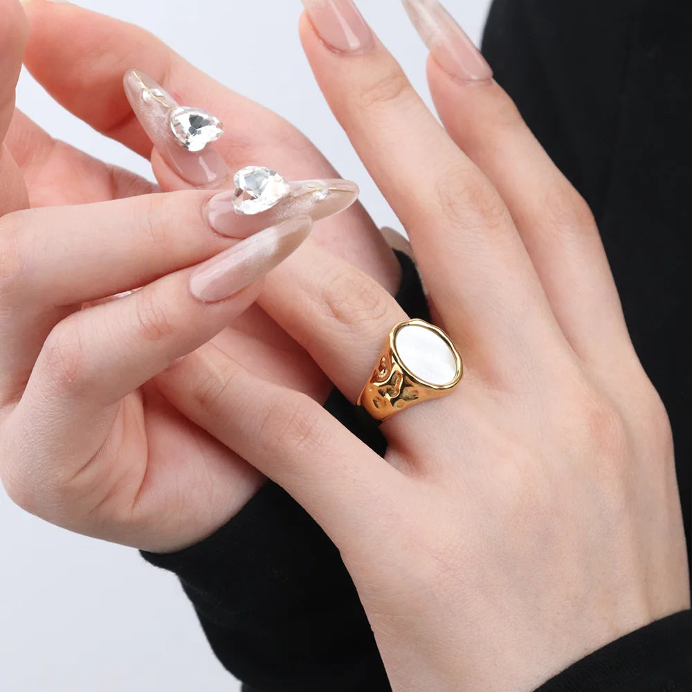 316Lサージカルステンレス リング シェル オーバル 【NY00873】