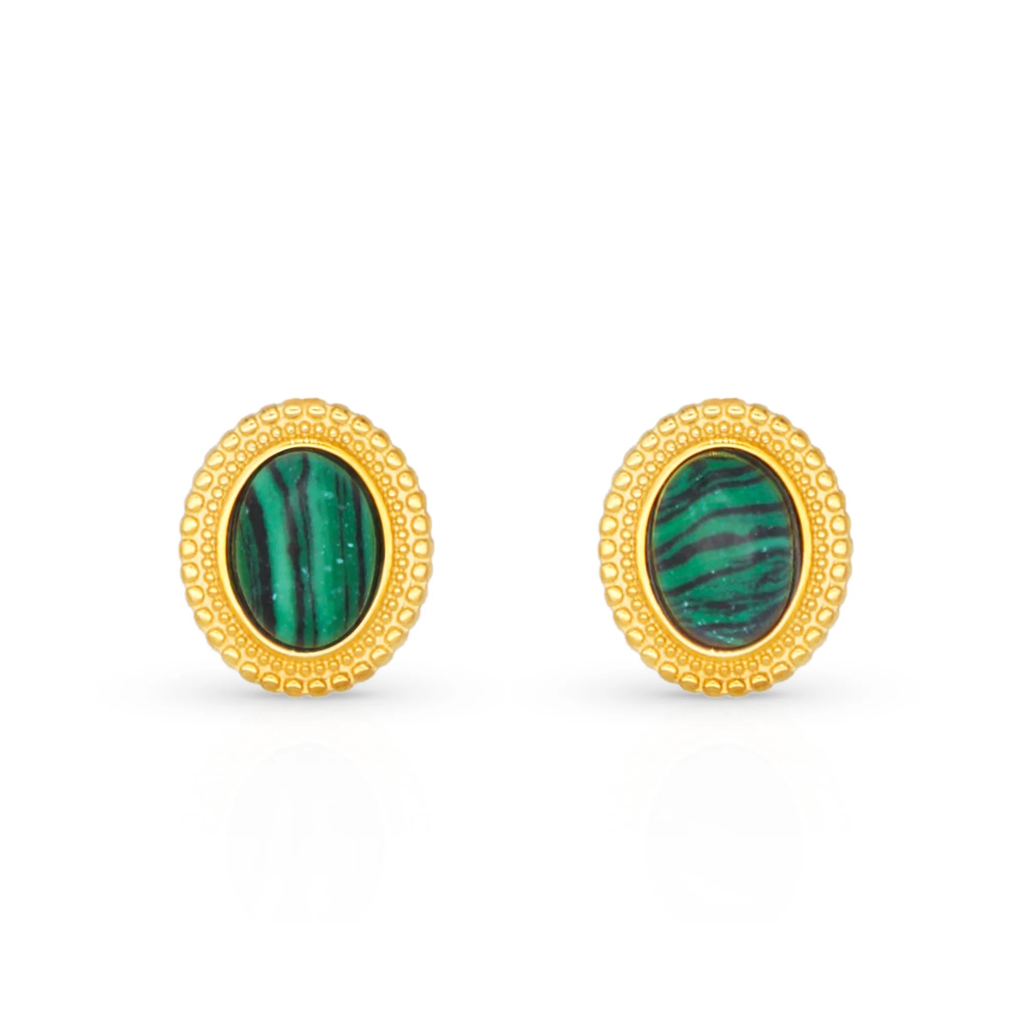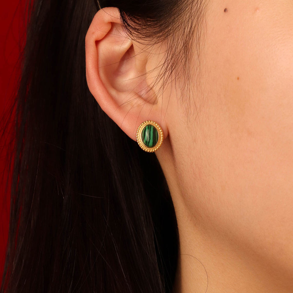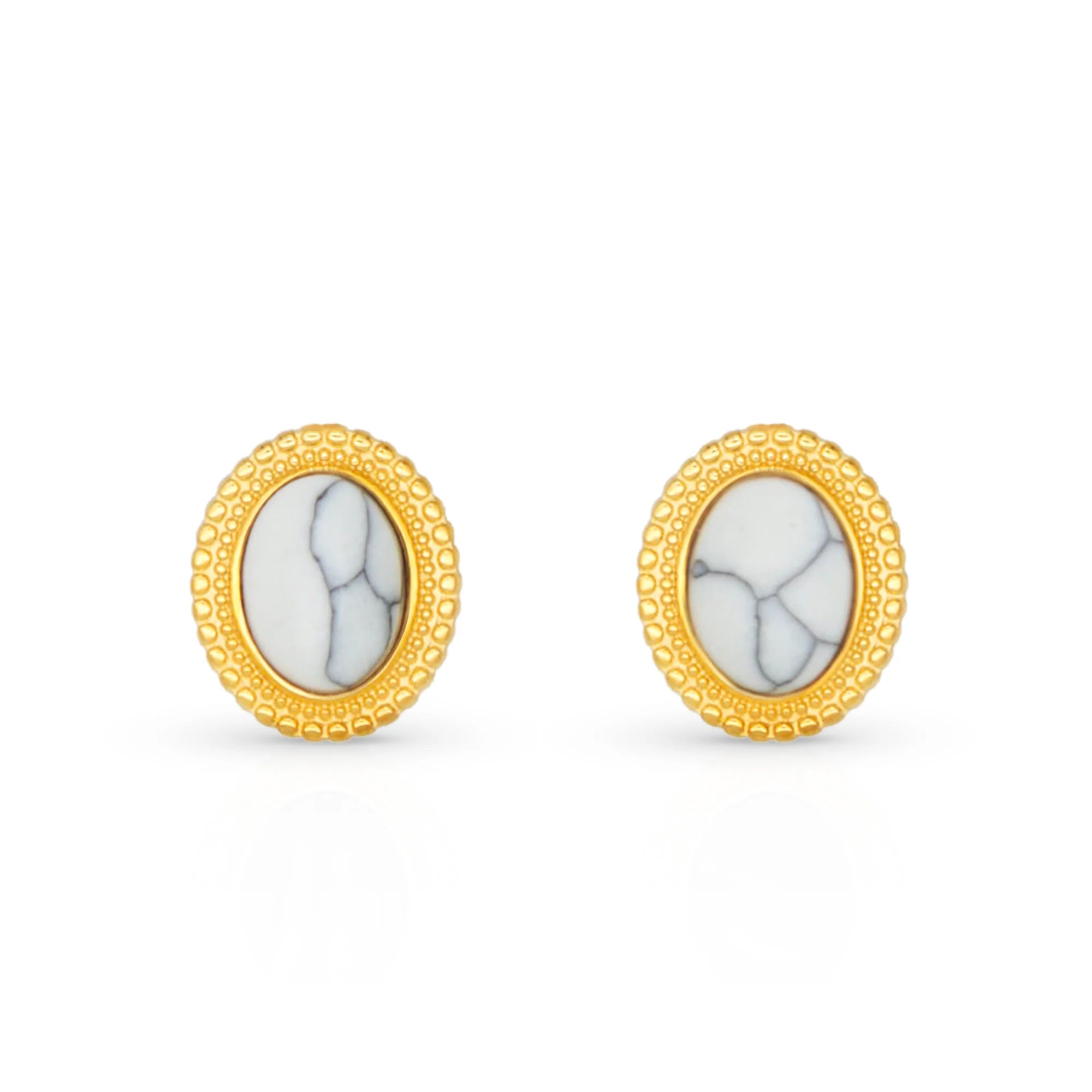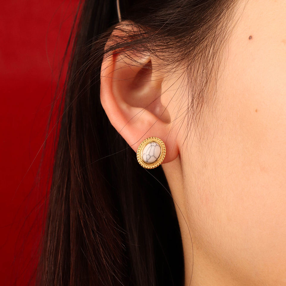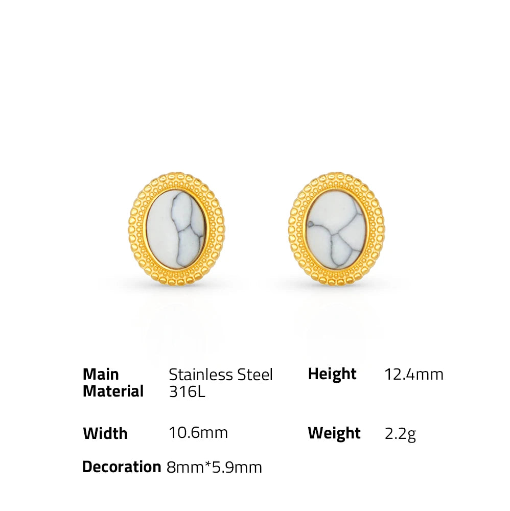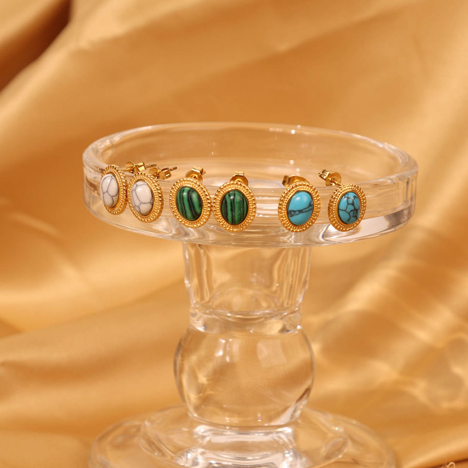 316Lサージカルステンレス 18Kゴールドメッキ ピアス 天然石風ストーン ターコイズ オーバル【NY00982】