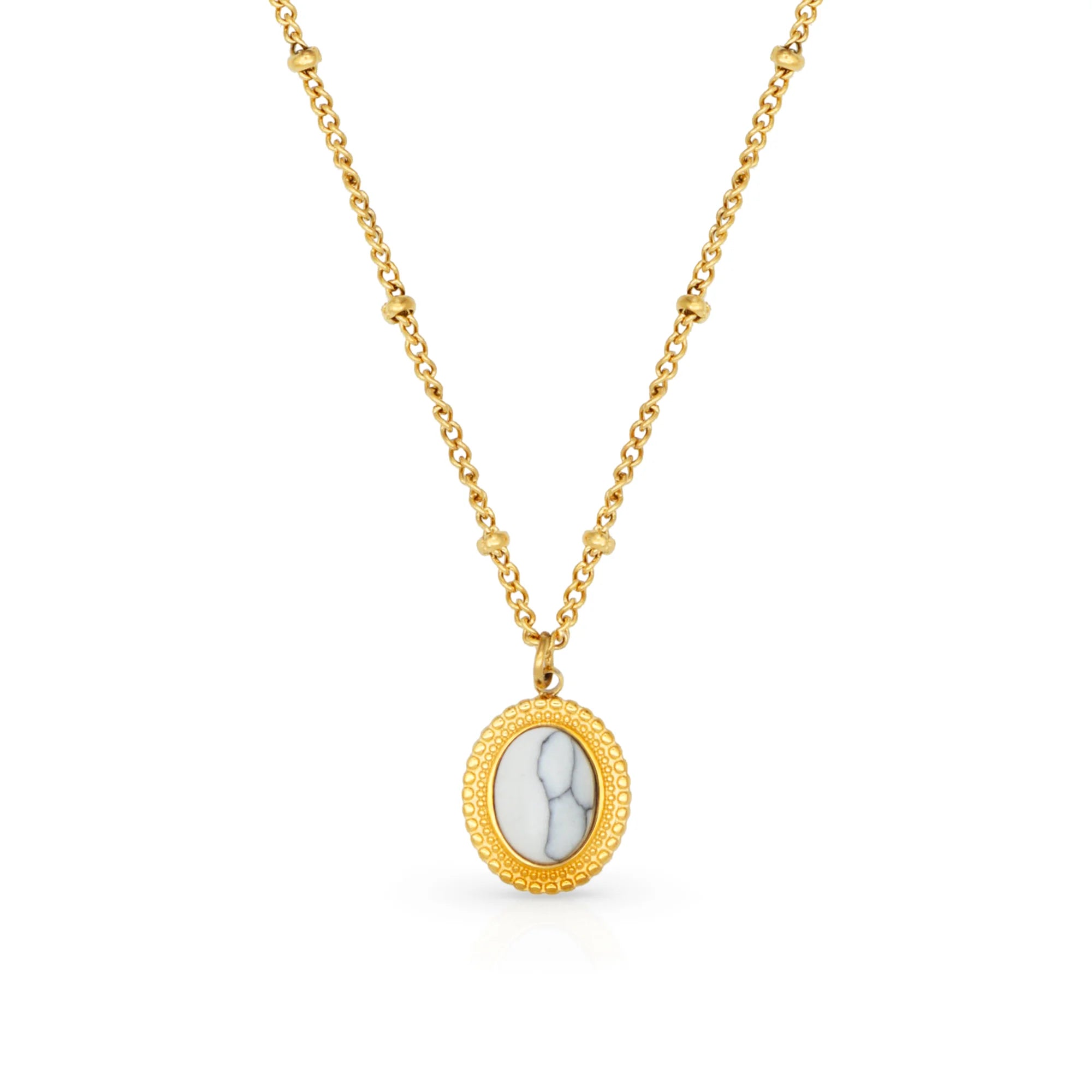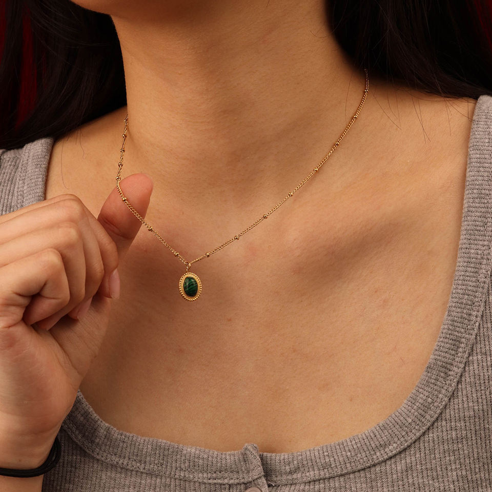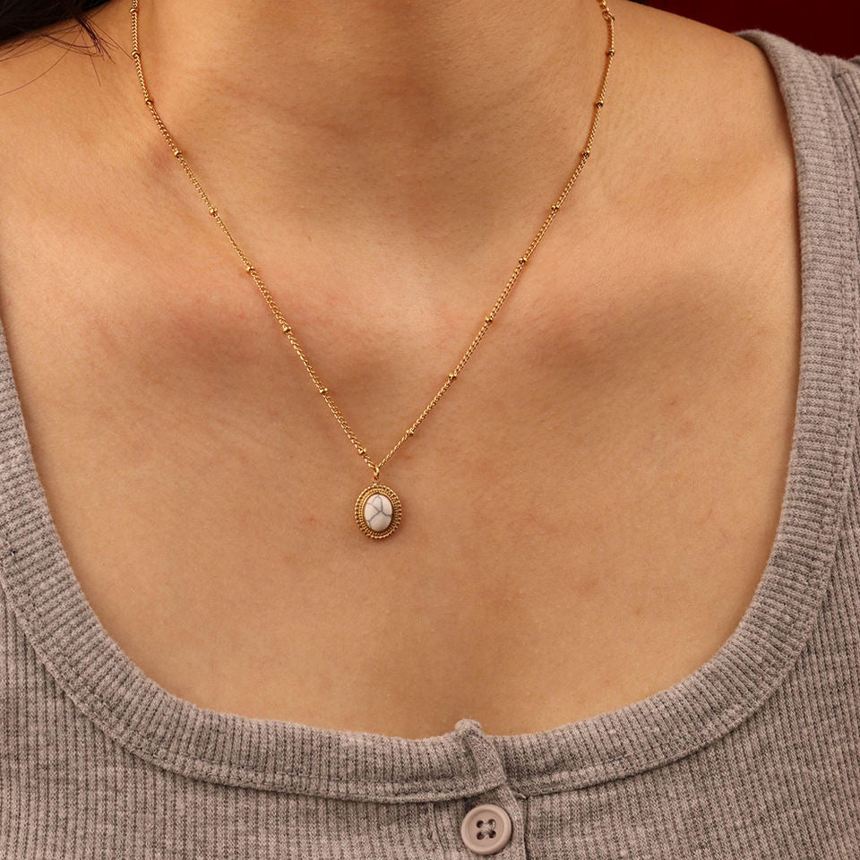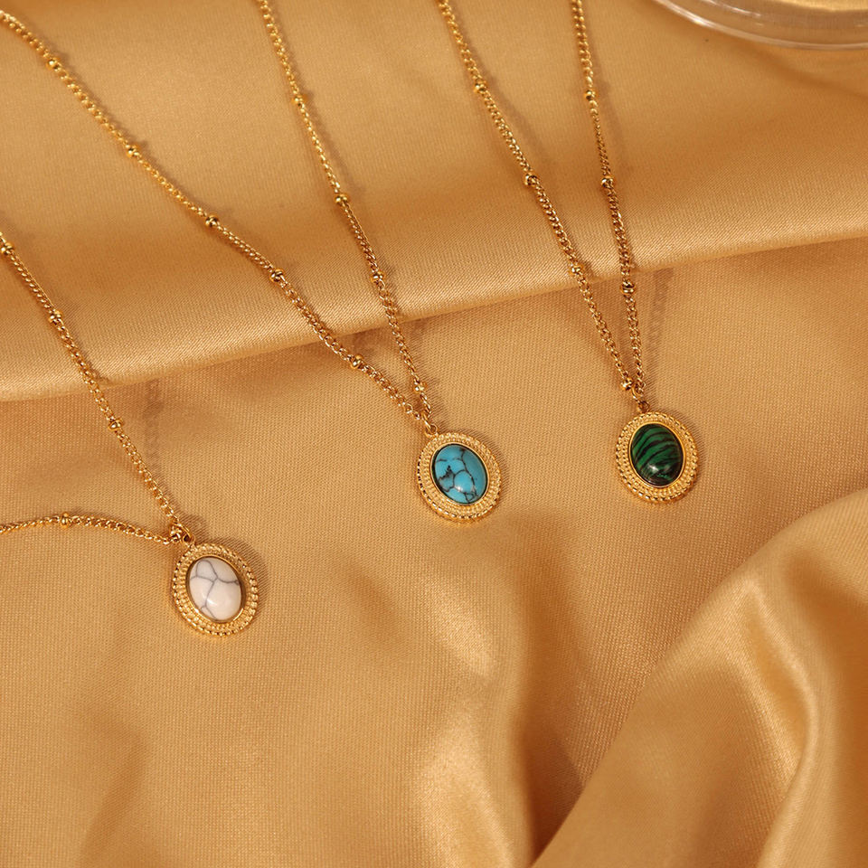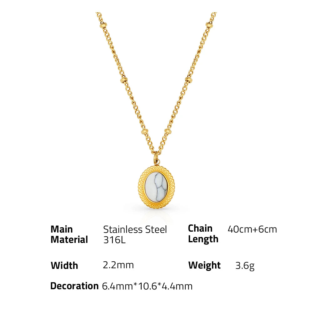 316Lサージカルステンレス 18Kゴールドメッキ ネックレス チェーン 天然石風ストーン オーバル【NY01021】