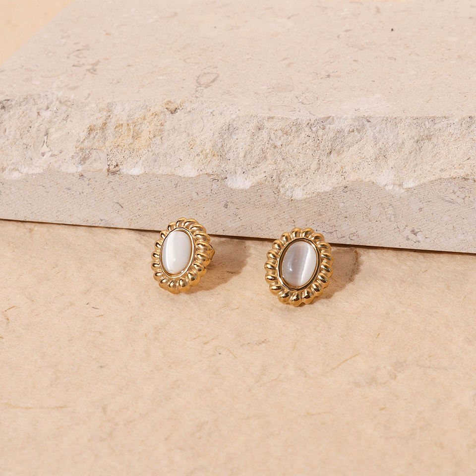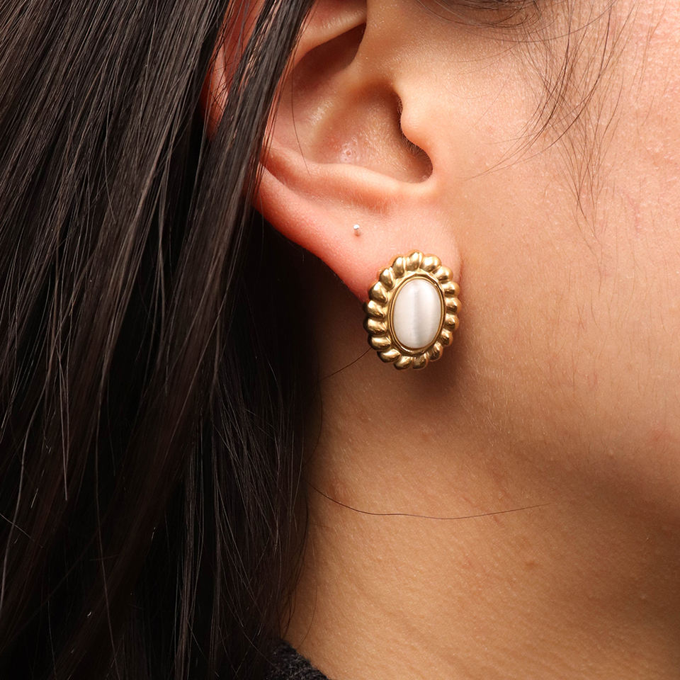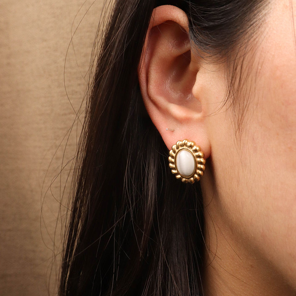 - ピアスのポスト部分は素材の特性上、キャッチがきつく感じられる場合や、スムーズに取り外せないことがありますが、これは不良品ではありませんのでご了承ください。特に新品時はゴールドメッキコーティングの厚みにより、やや固めに感じることがございます。無理に力を加えるとポストの曲がりや破損につながる可能性があるため、優しくゆっくりと着脱いただくことをおすすめします。