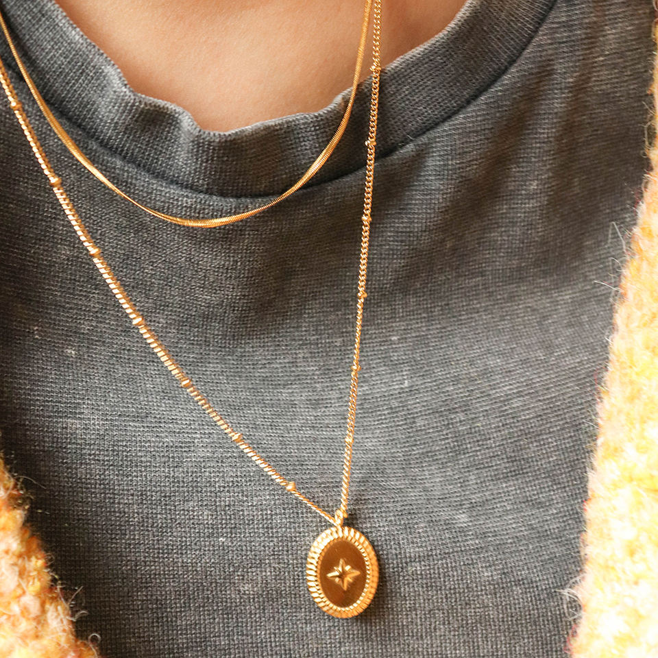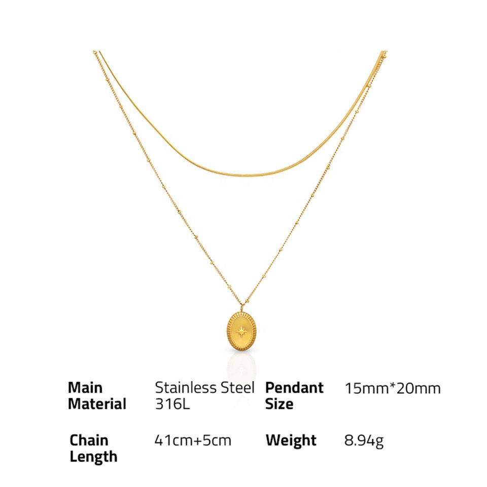 316Lサージカルステンレス ネックレス 2層 オーバル【NY01136】