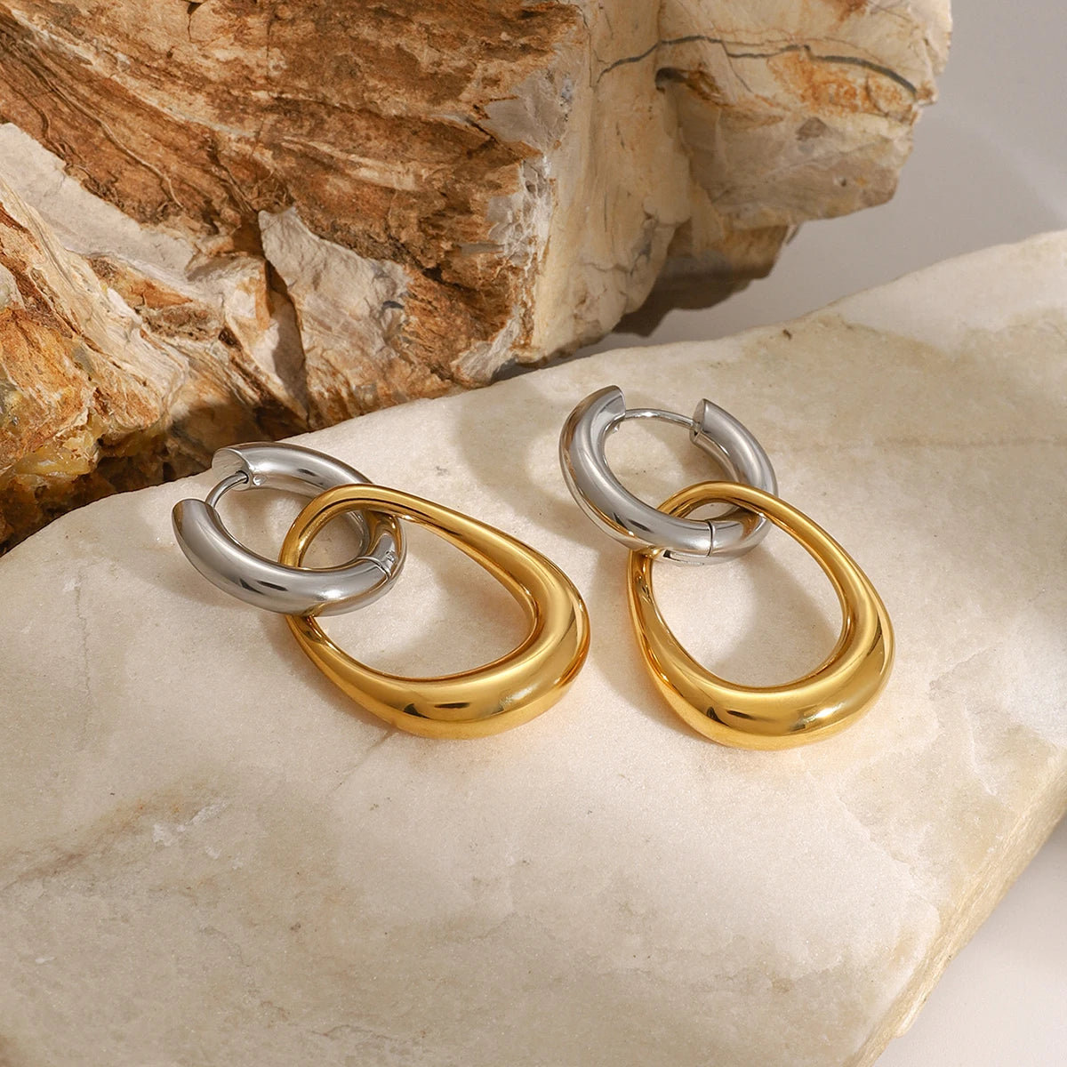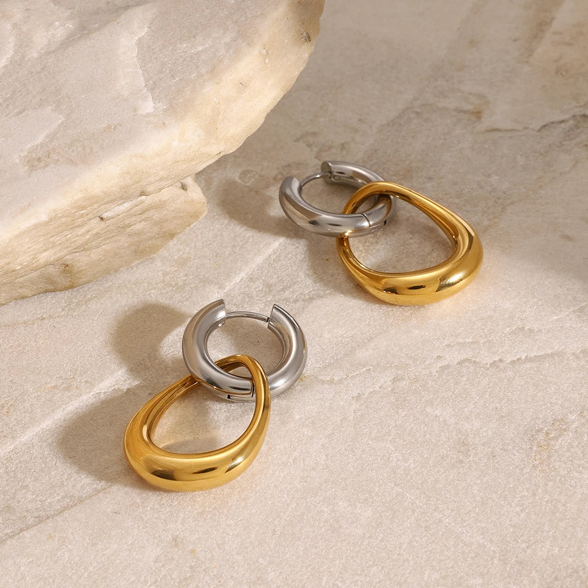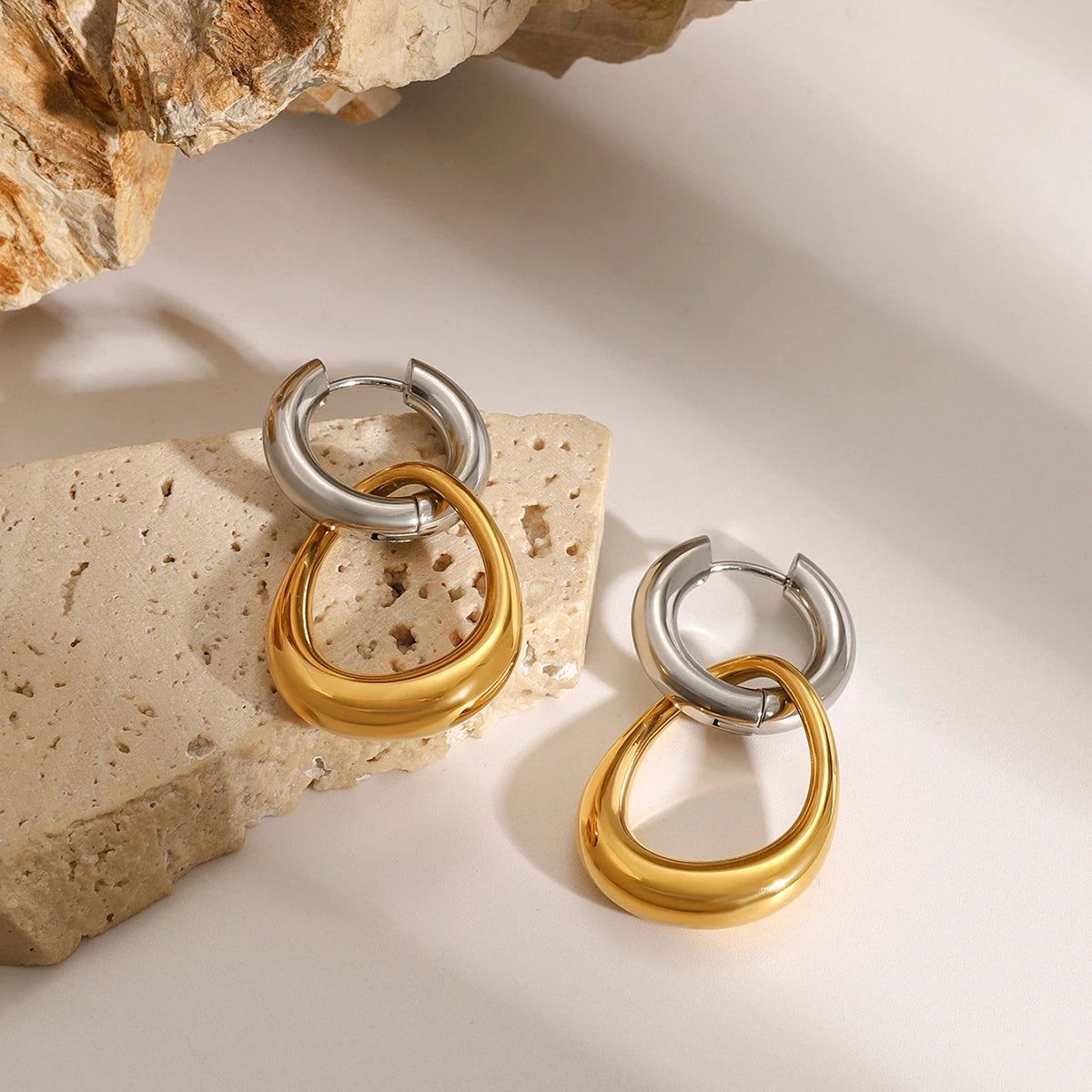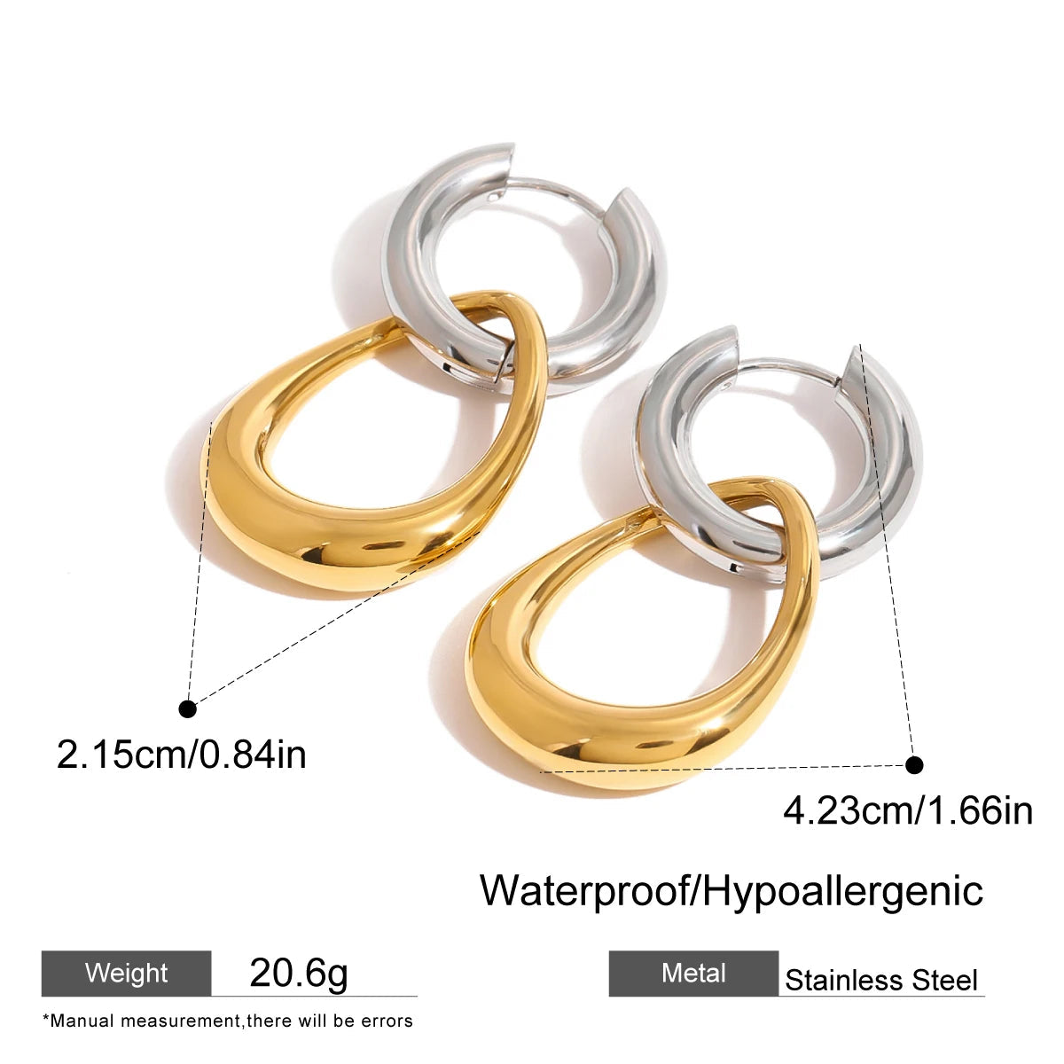 ステンレス304 低ニッケル 水に濡れても錆びにくい 18Kゴールドメッキ ピアス フープ オーバル【YJ02779】