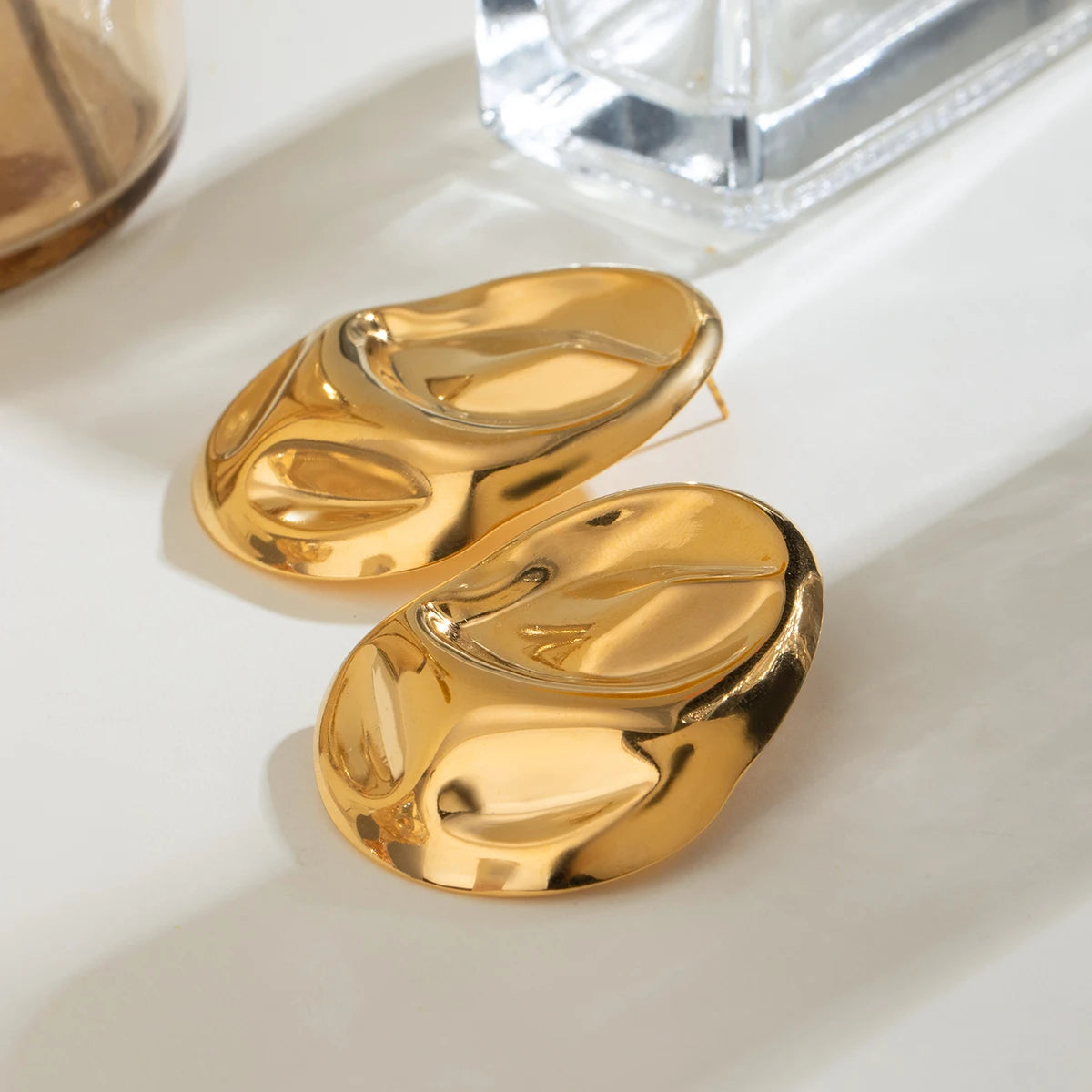 - ピアスのポスト部分は素材の特性上、キャッチがきつく感じられる場合や、スムーズに取り外せないことがありますが、これは不良品ではありませんのでご了承ください。特に新品時はゴールドメッキコーティングの厚みにより、やや固めに感じることがございます。無理に力を加えるとポストの曲がりや破損につながる可能性があるため、優しくゆっくりと着脱いただくことをおすすめします。