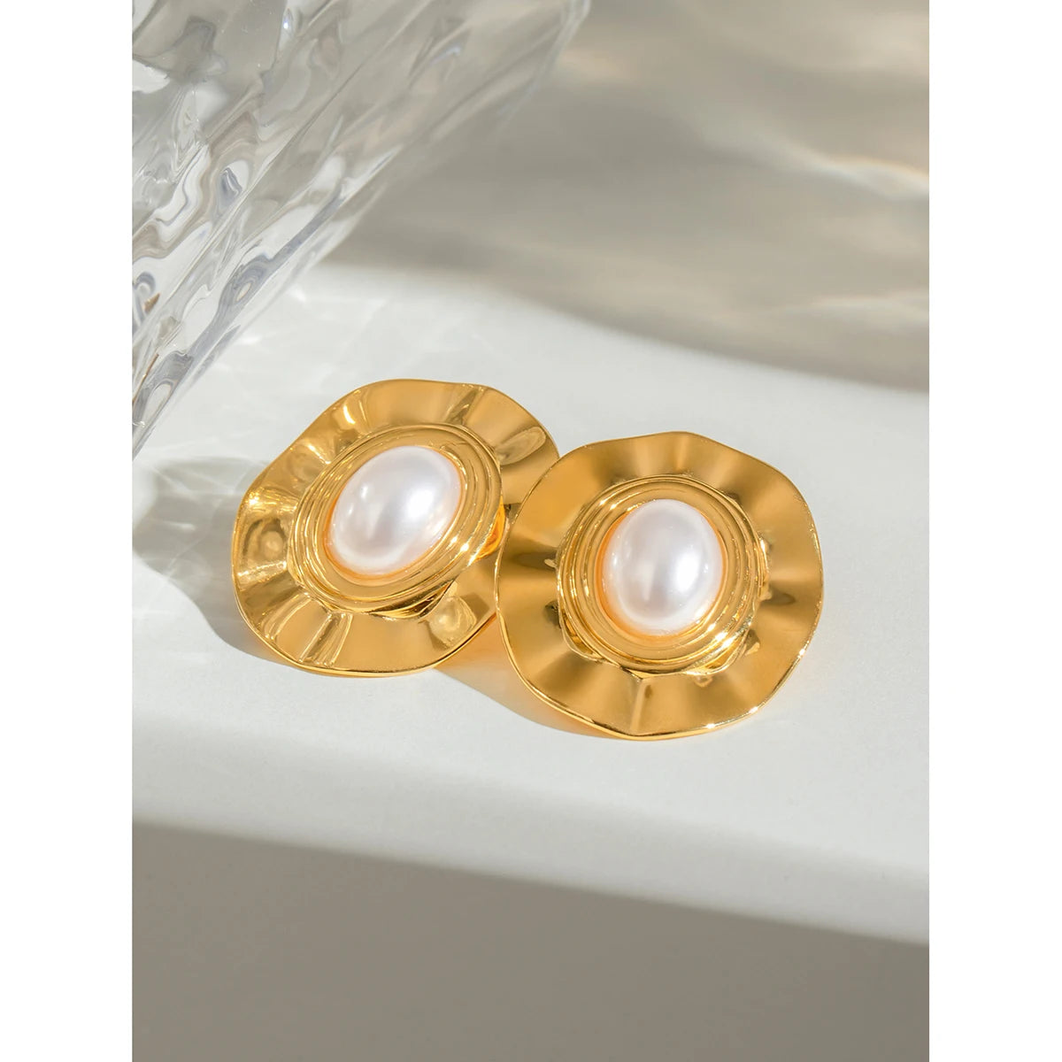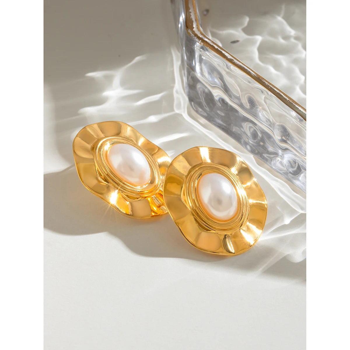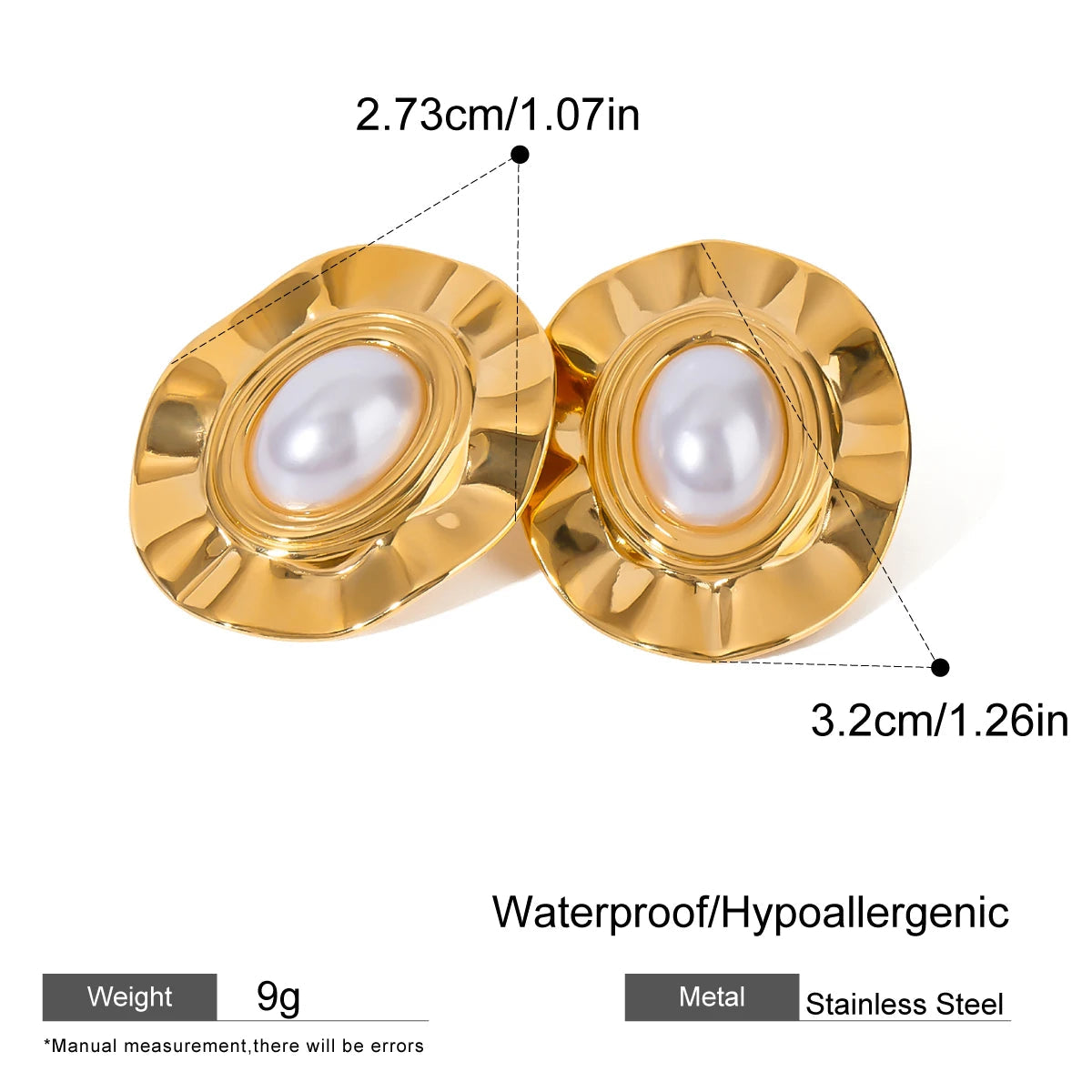 ステンレス304 低ニッケル 水に濡れても錆びにくい 18Kゴールドメッキ ピアス フラワー オーバル 【YJ03176】
