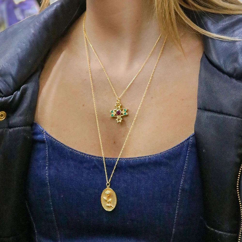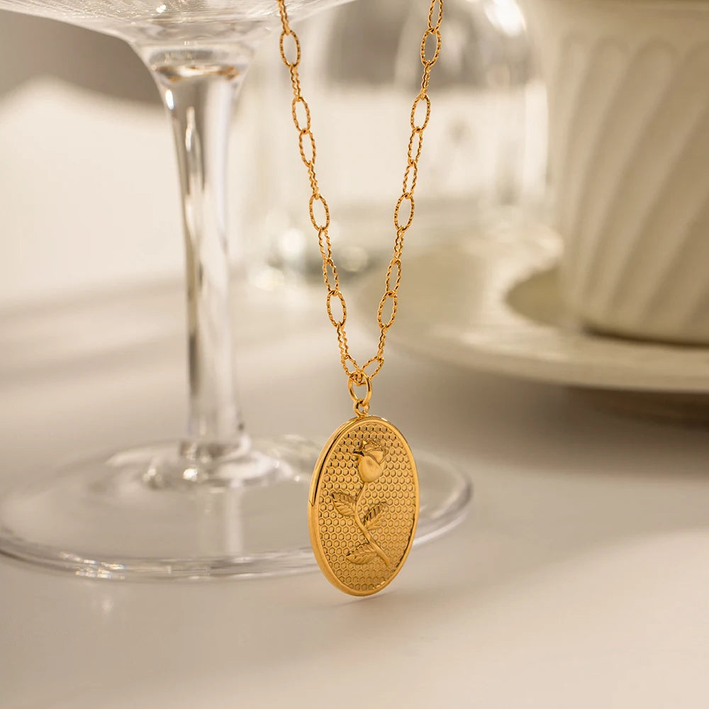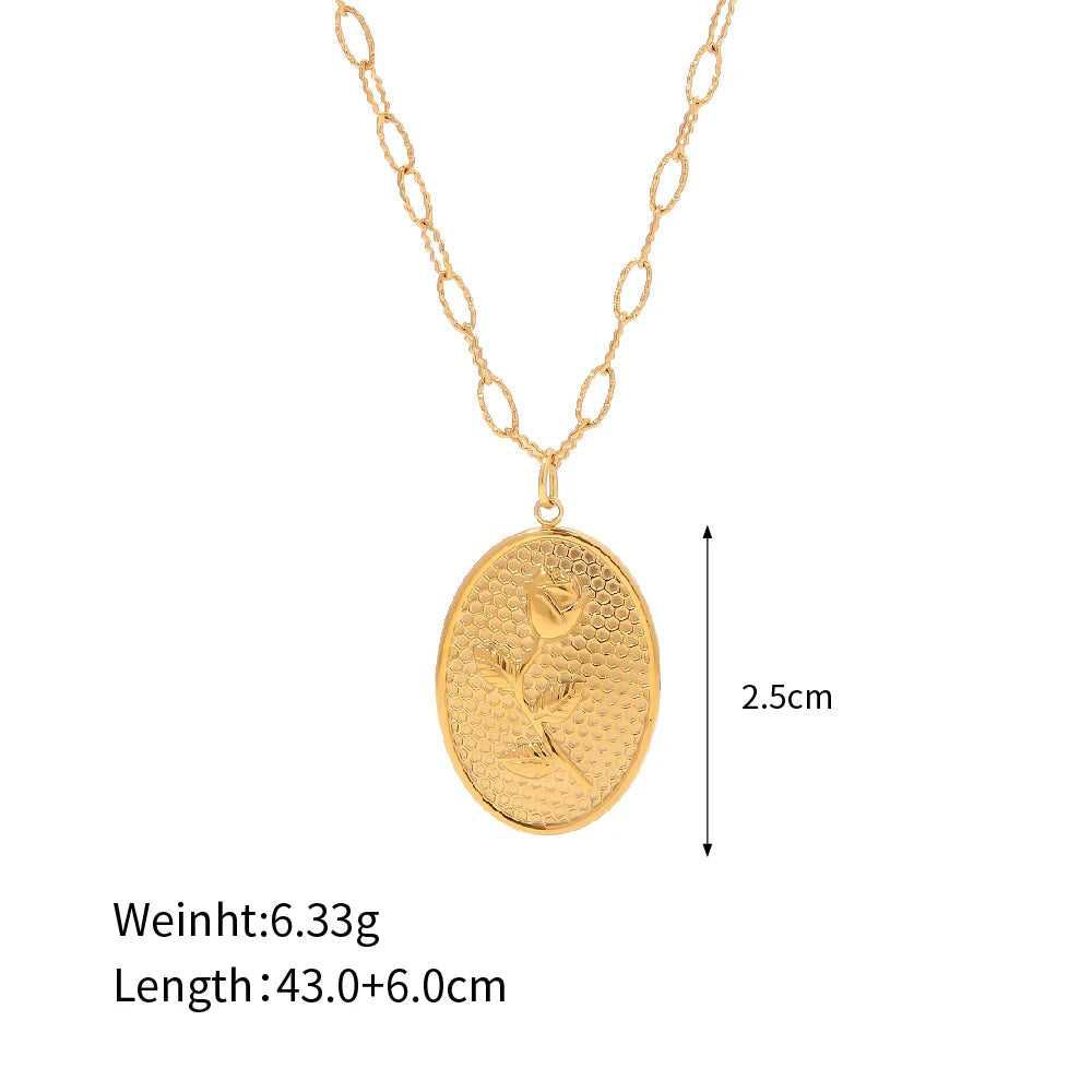 ステンレス304 低ニッケル 水に濡れても錆びにくい 18Kゴールドメッキ ネックレス チェーン 薔薇 ローズ オーバル【YJ03794】