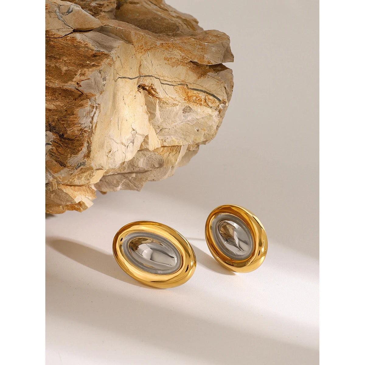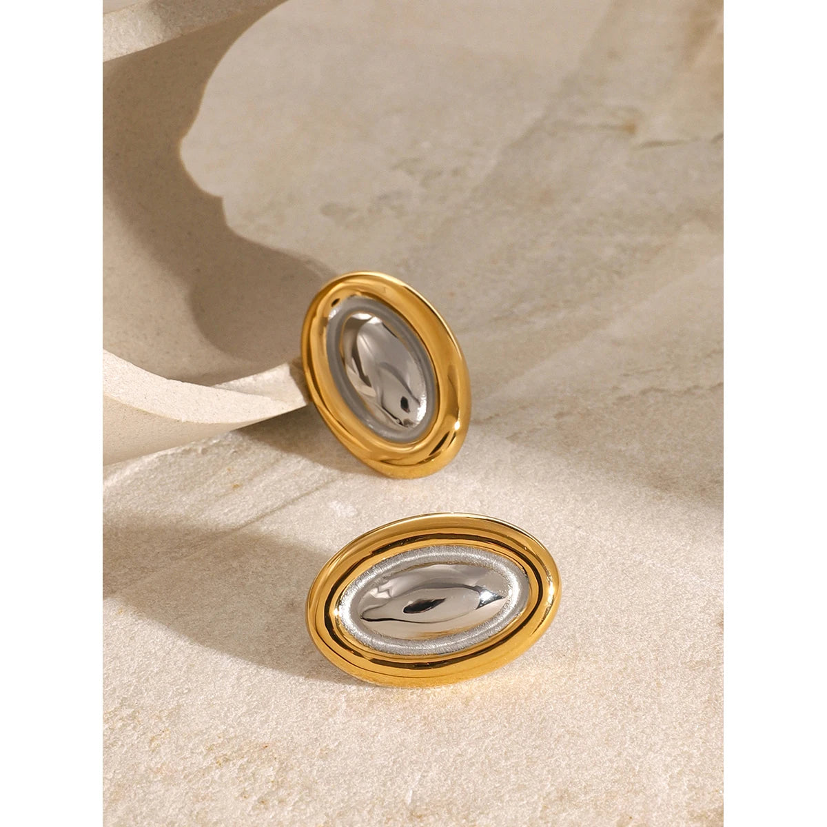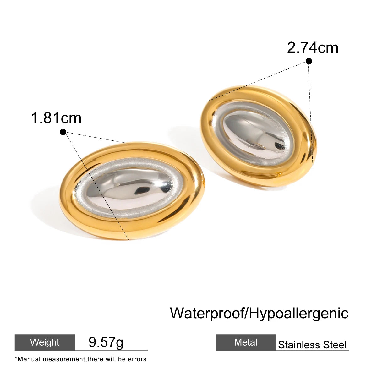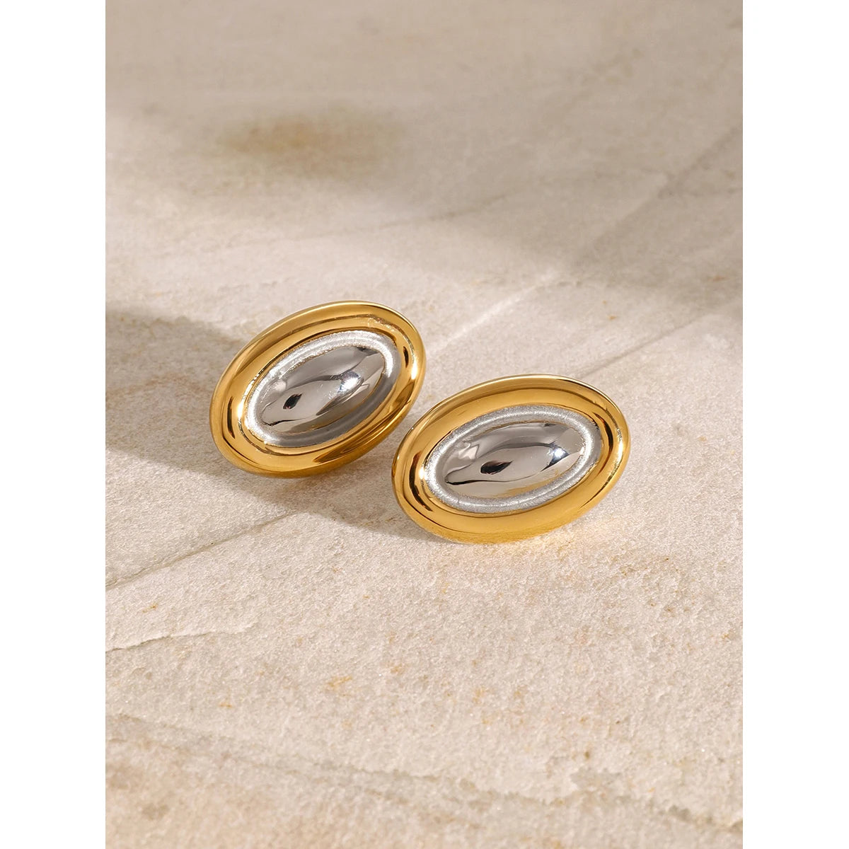 ステンレス304 低ニッケル 水に濡れても錆びにくい 18Kゴールドメッキ ピアス オーバル【YJ03927】