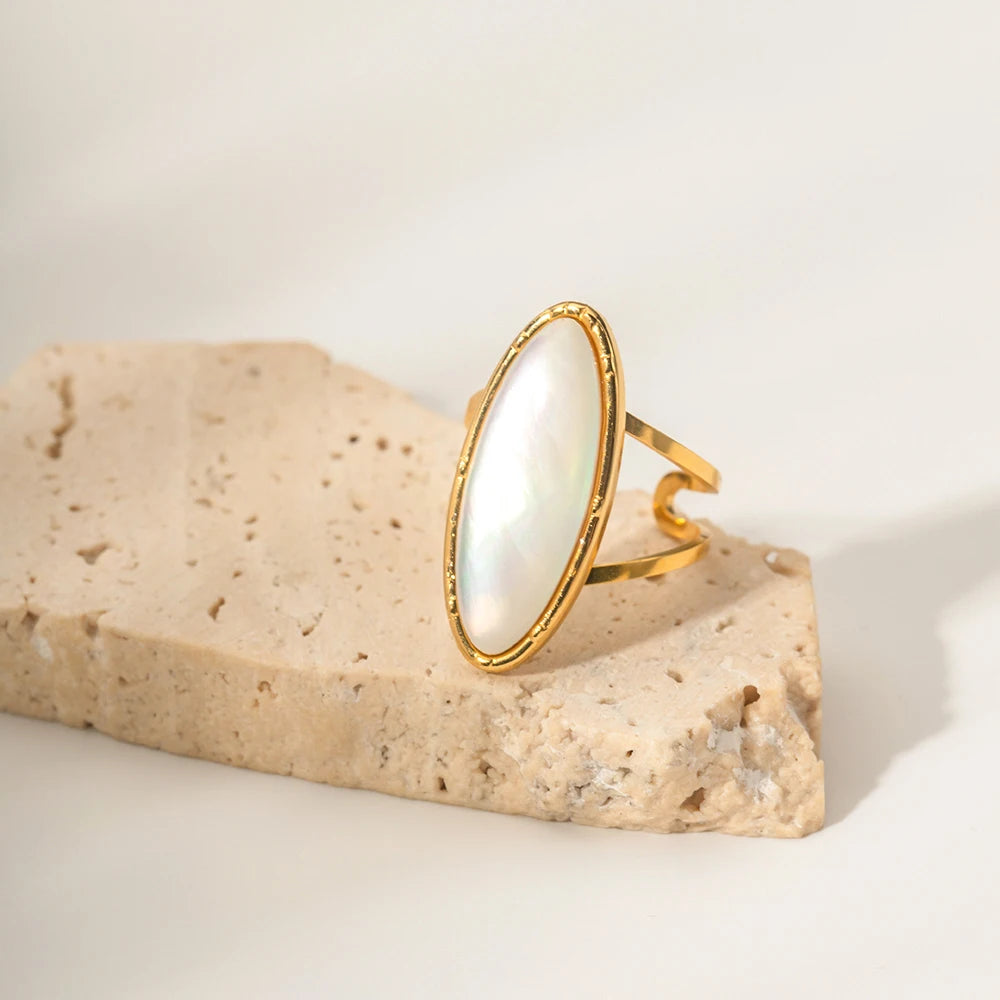ステンレス304 低ニッケル 水に濡れても錆びにくい 18Kゴールドメッキ リング シェル 貝殻 オーバル【YJ04000】