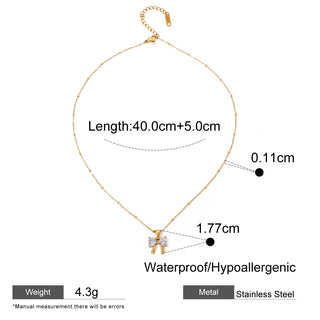 ステンレス304 低ニッケル 水に濡れても錆びにくい 18Kゴールドメッキ ネックレス リボン ジルコニア 【YJ02306】