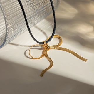 ステンレス304 低ニッケル 水に濡れても錆びにくい 18Kゴールドメッキ ネックレス リボン 【YJ02285】