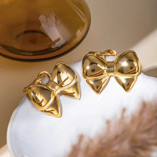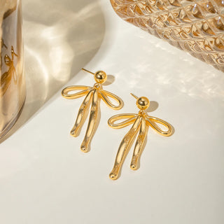 ステンレス304 低ニッケル 水に濡れても錆びにくい 18Kゴールドメッキ ピアス リボン 【YJ03148】