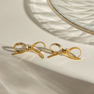 ステンレス304 低ニッケル 水に濡れても錆びにくい 18Kゴールドメッキ ピアス リボン 【YJ03760】