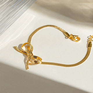 ステンレス304 低ニッケル 水に濡れても錆びにくい 18Kゴールドメッキ ブレスレット リボン スネークチェーン 【YJ03950】