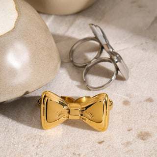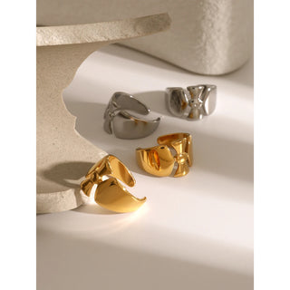 ステンレス304 低ニッケル 水に濡れても錆びにくい 18Kゴールドメッキ リング チャンキー リボン 【YJ03762】