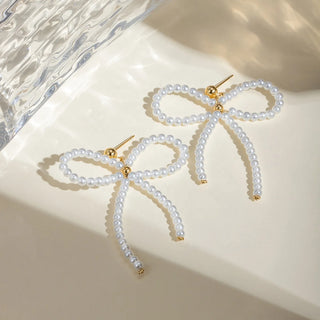 ステンレス304 低ニッケル 水に濡れても錆びにくい 18Kゴールドメッキ ピアス リボン パール 【YJ02134】
