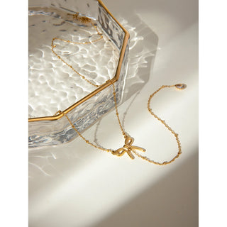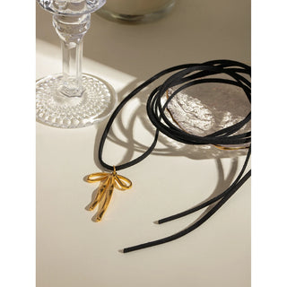 ステンレス304 低ニッケル 水に濡れても錆びにくい 18Kゴールドメッキ ネックレス リボン 【YJ02108】
