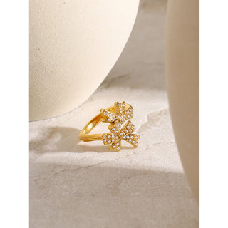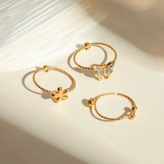 ステンレス304 低ニッケル 水に濡れても錆びにくい 18Kゴールドメッキ リング フラワー 花 リボン ジルコニア 3点セット【YJ02344】