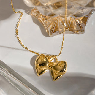 ステンレス304 低ニッケル 水に濡れても錆びにくい 18Kゴールドメッキ ネックレス リボン チャーム【YJ01252】