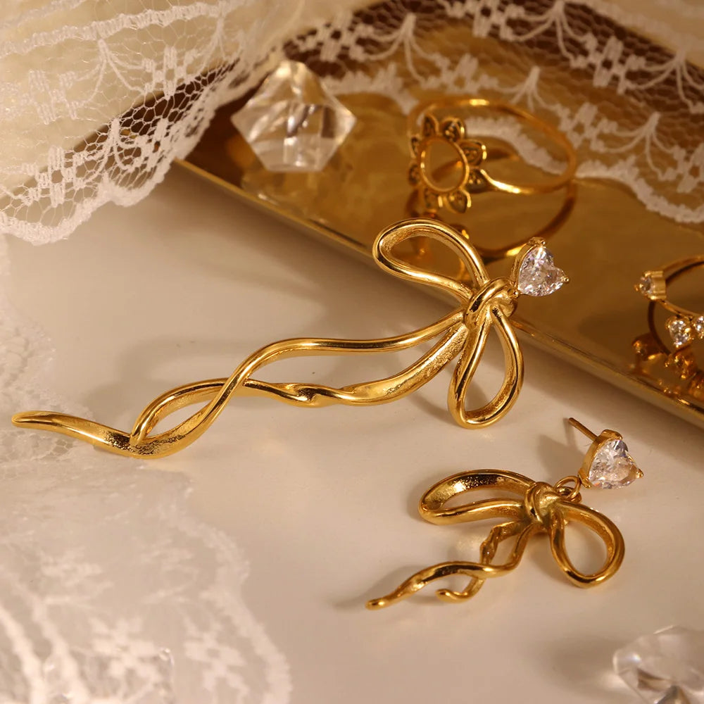 316Lサージカルステンレス ピアス リボン 【NY00962】