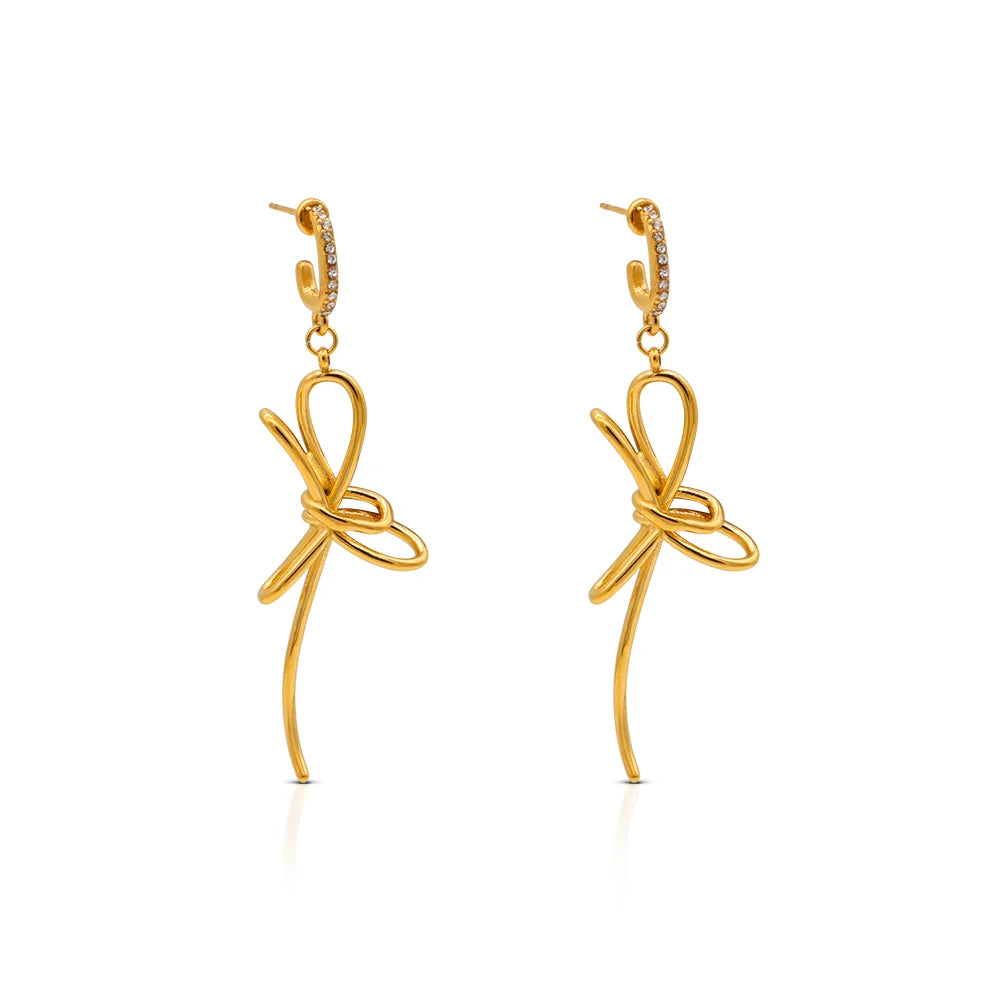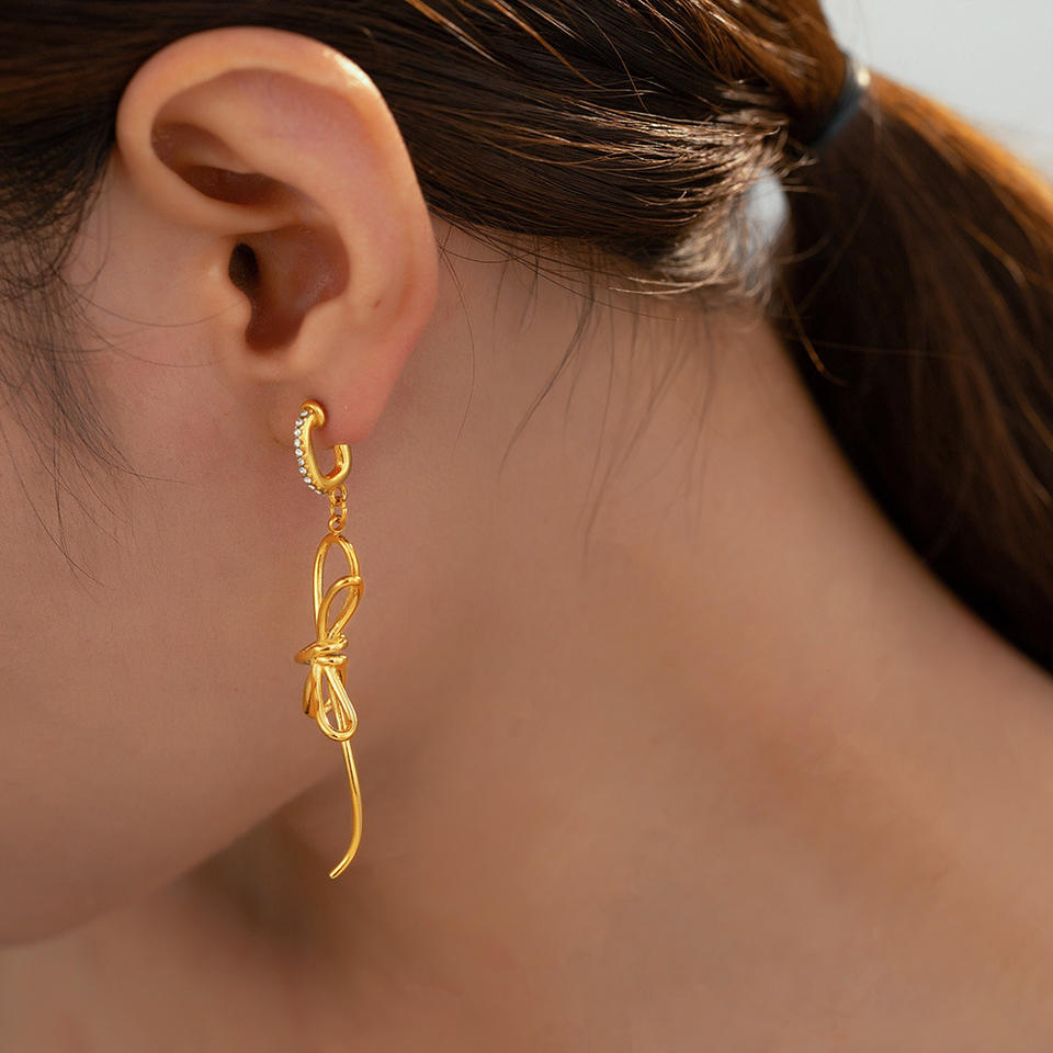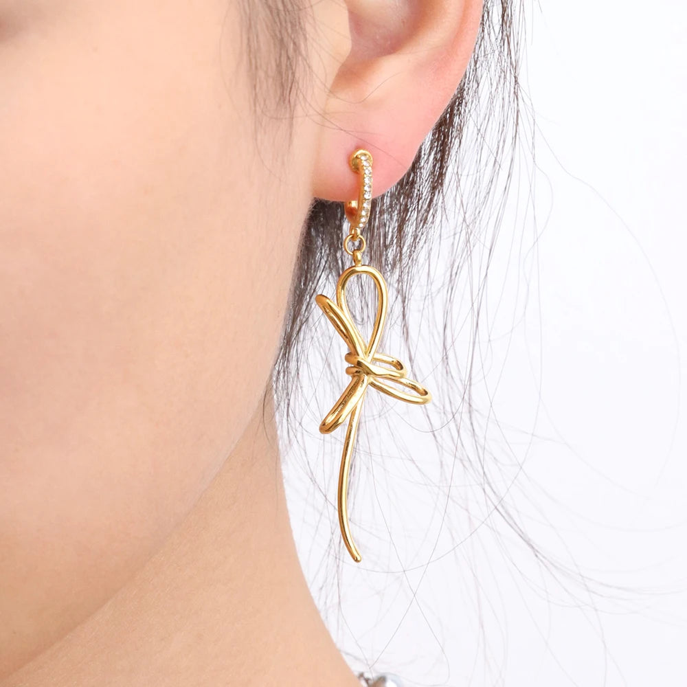 316Lサージカルステンレス ピアス リボン ジルコニア 【NY01501】