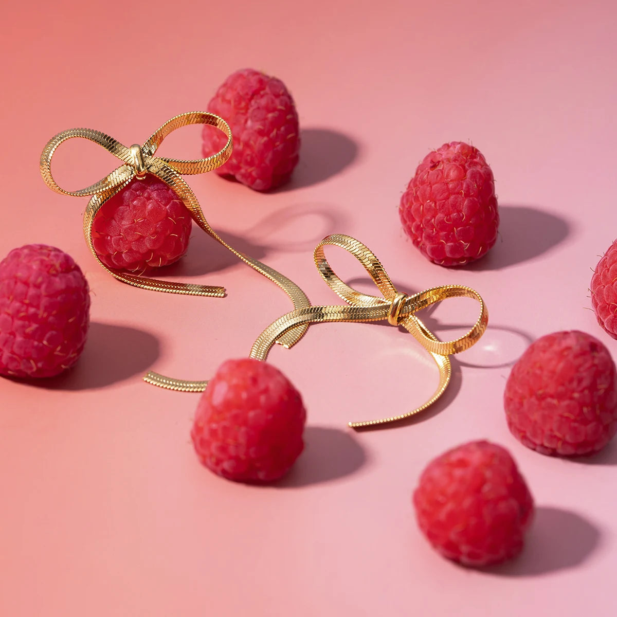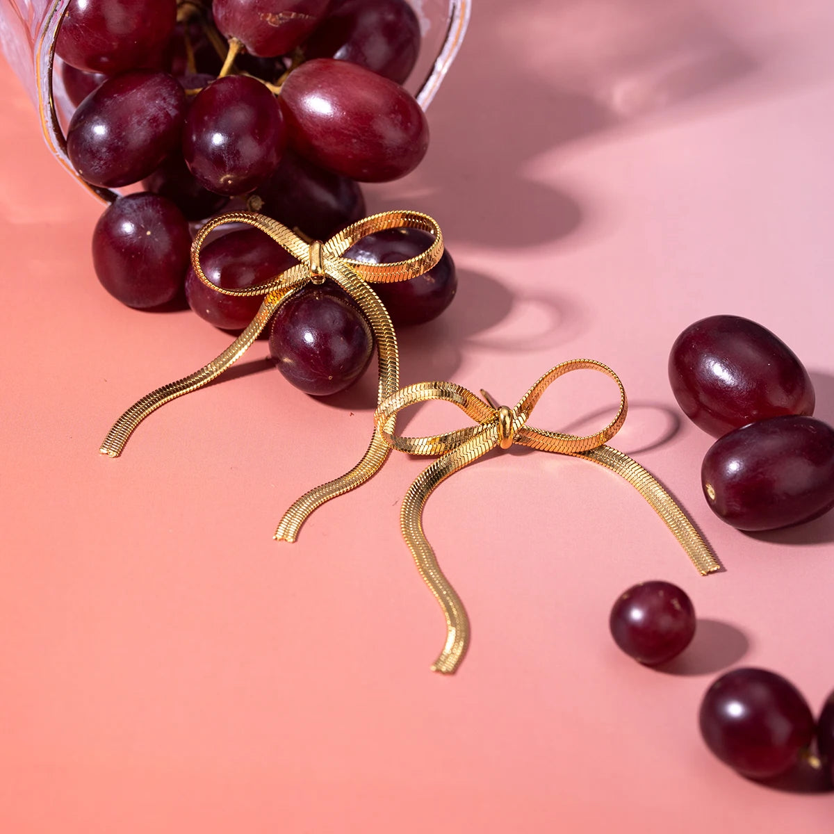 ステンレス304 低ニッケル 水に濡れても錆びにくい 18Kゴールドメッキ ピアス リボン 【YJ01148】