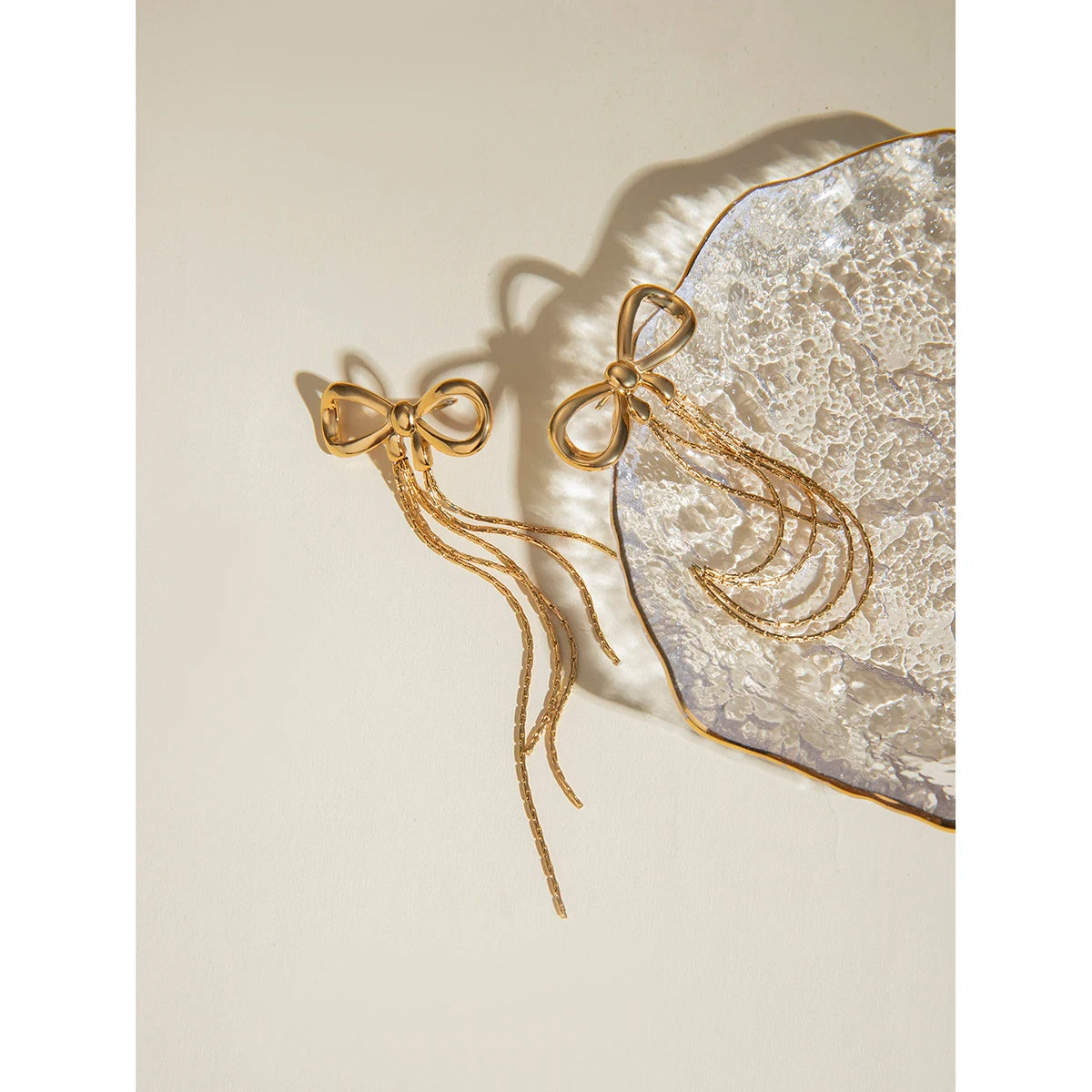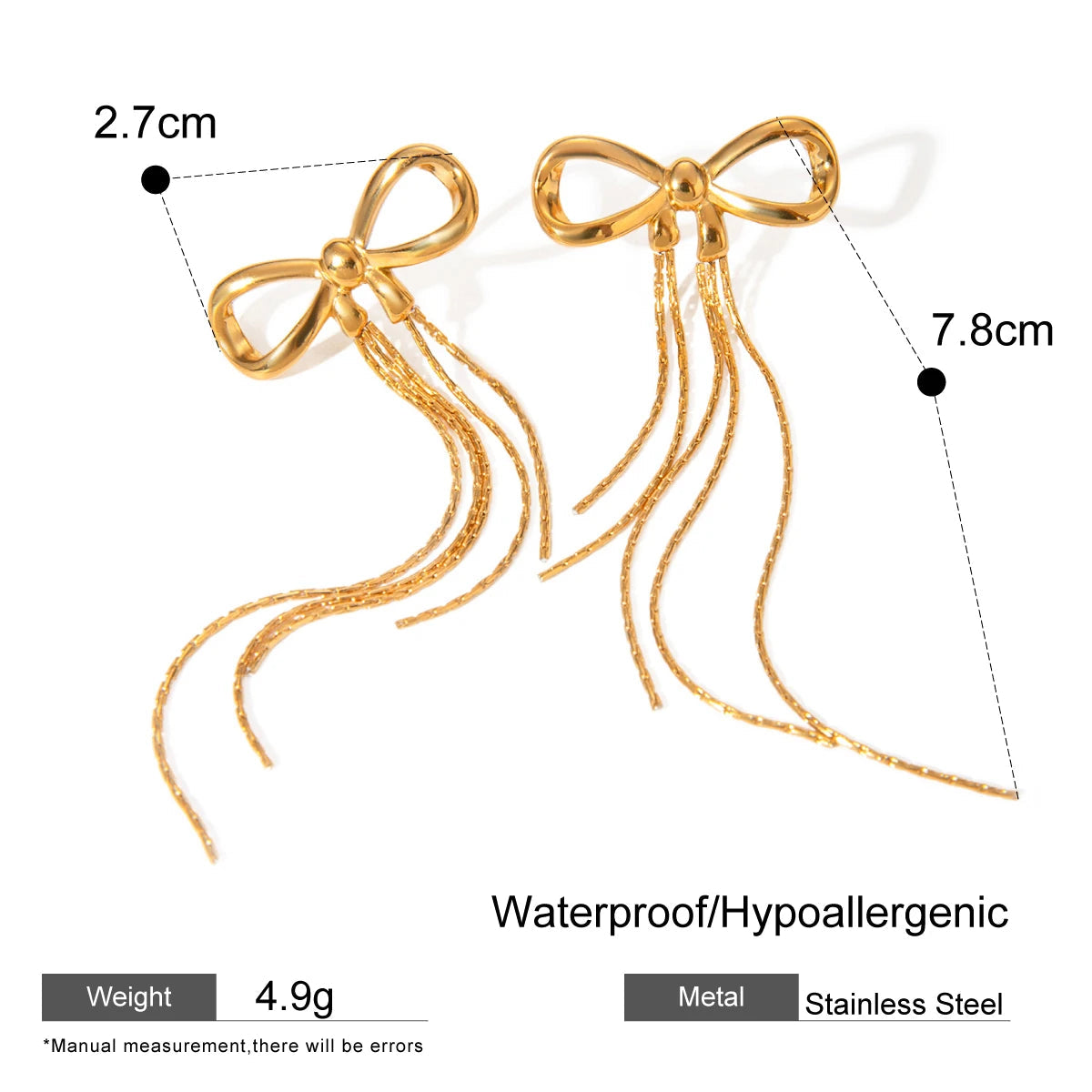 ステンレス304 低ニッケル 水に濡れても錆びにくい 18Kゴールドメッキ ピアス タッセル リボン 【YJ01547】