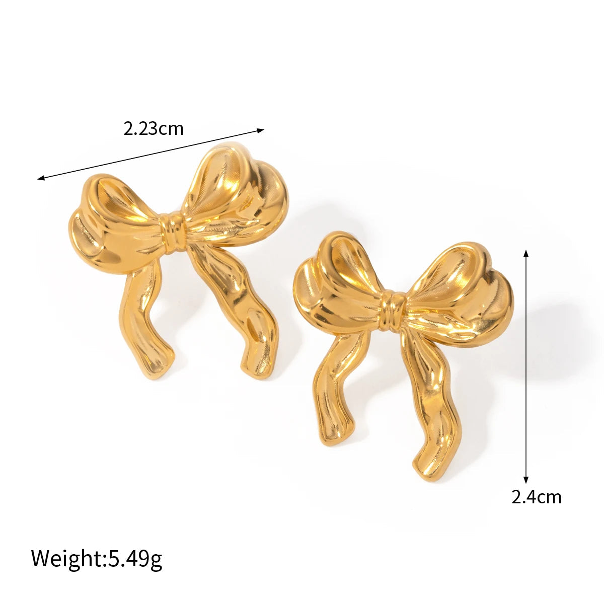 ステンレス304 低ニッケル 水に濡れても錆びにくい 18Kゴールドメッキ ピアス リボン 【YJ01548】