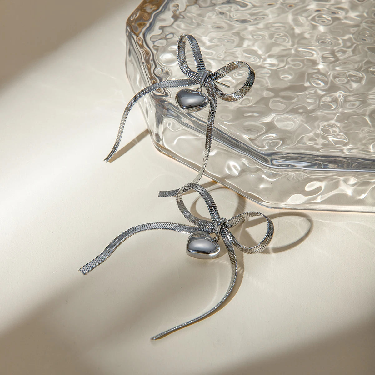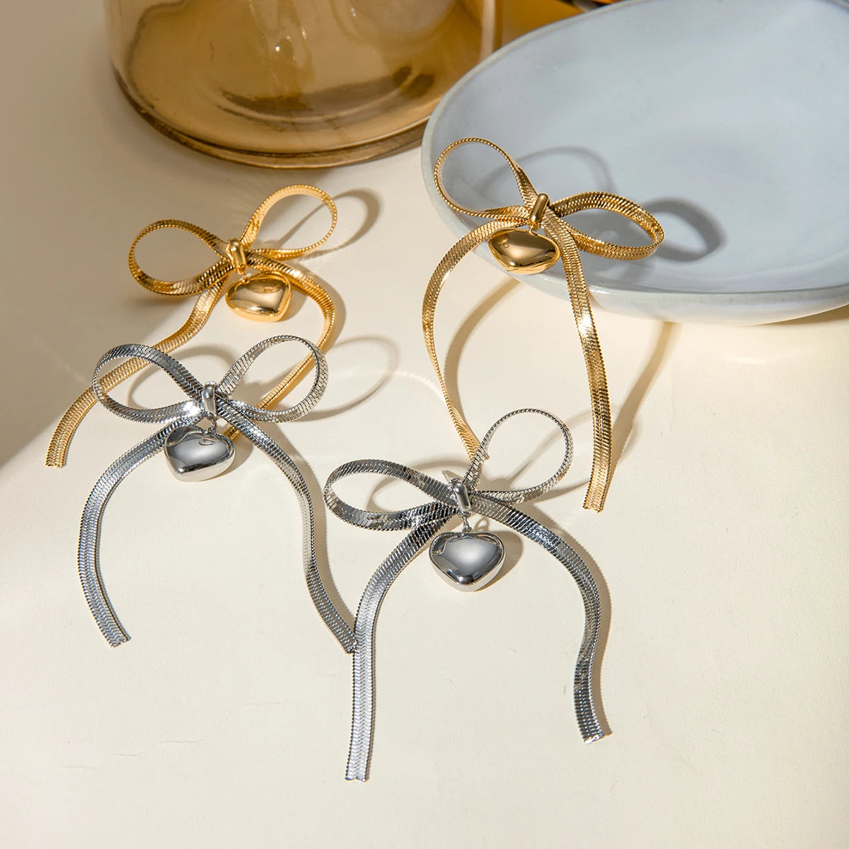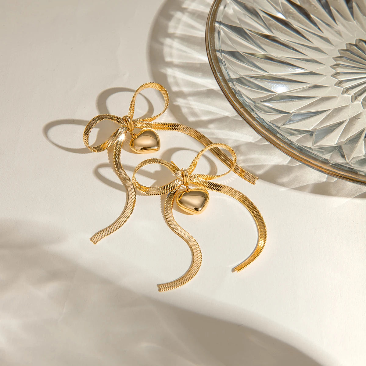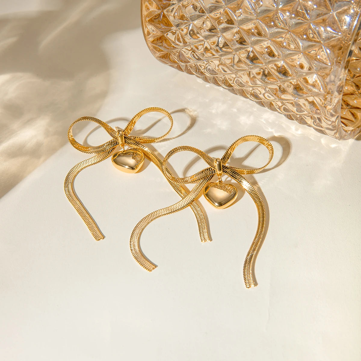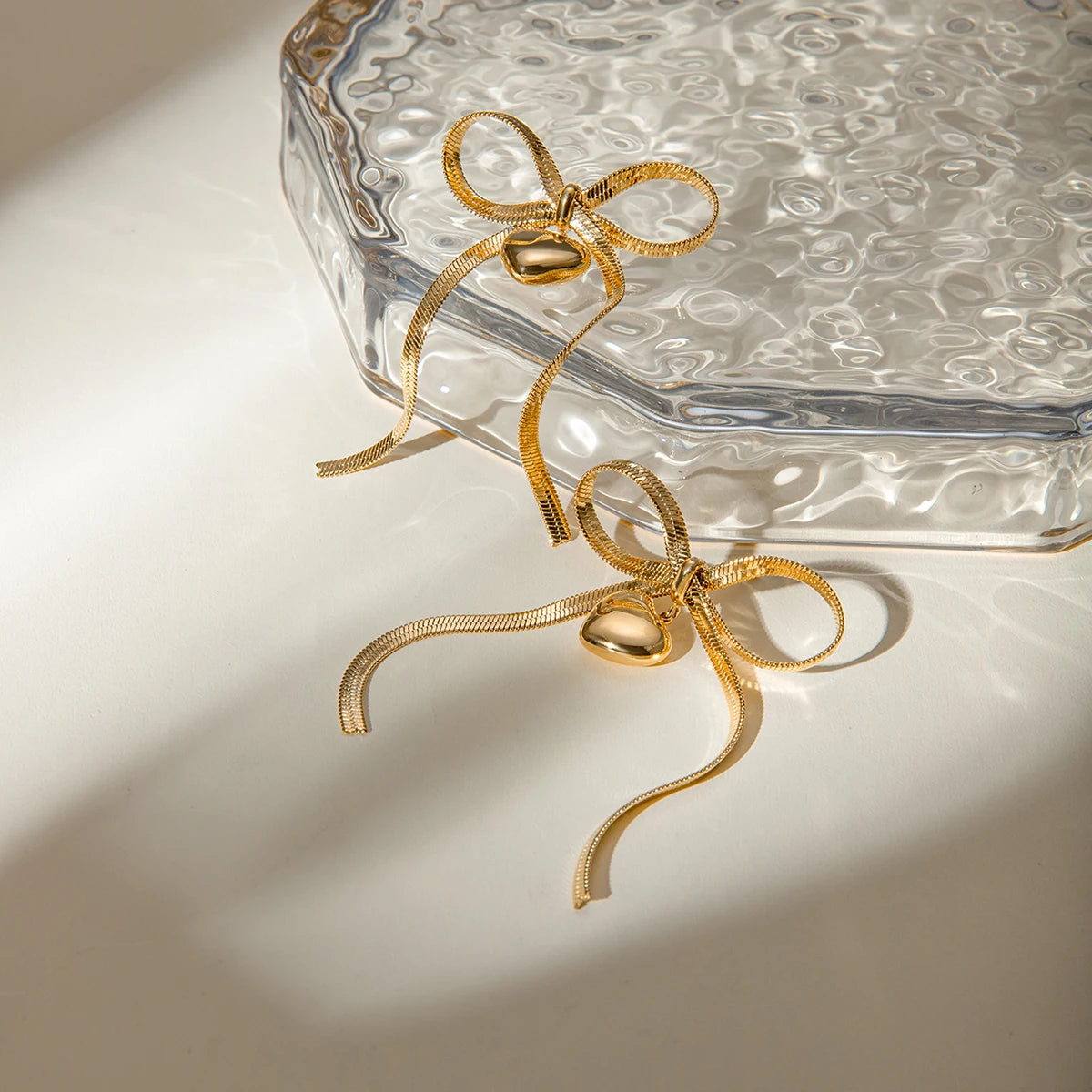 ステンレス304 低ニッケル 水に濡れても錆びにくい 18Kゴールドメッキ ピアス スネークチェーン リボン 【YJ01909】