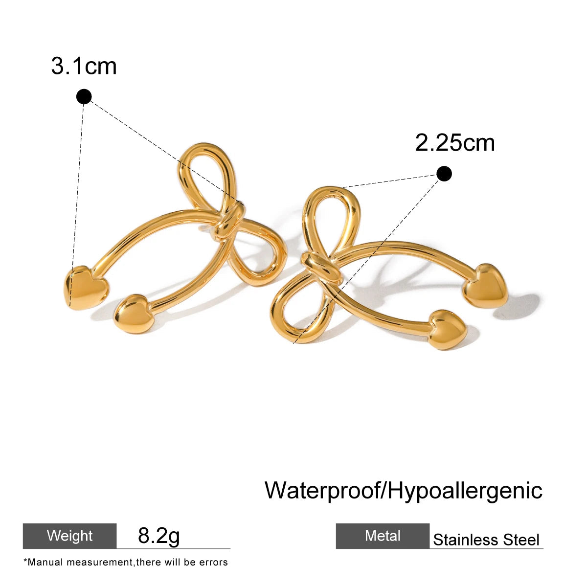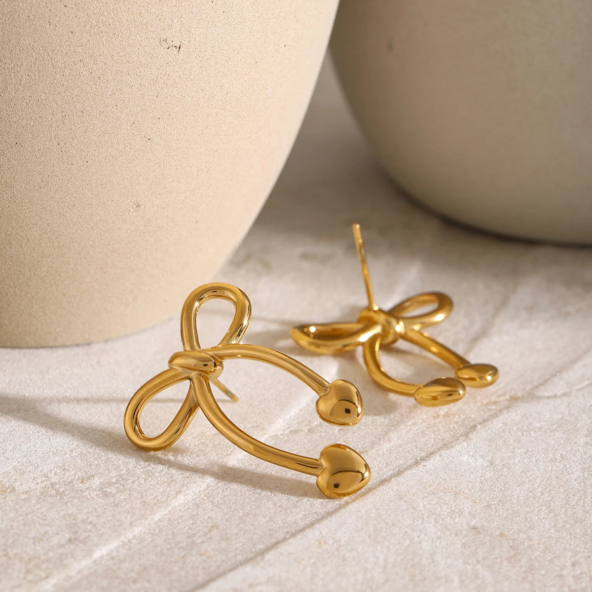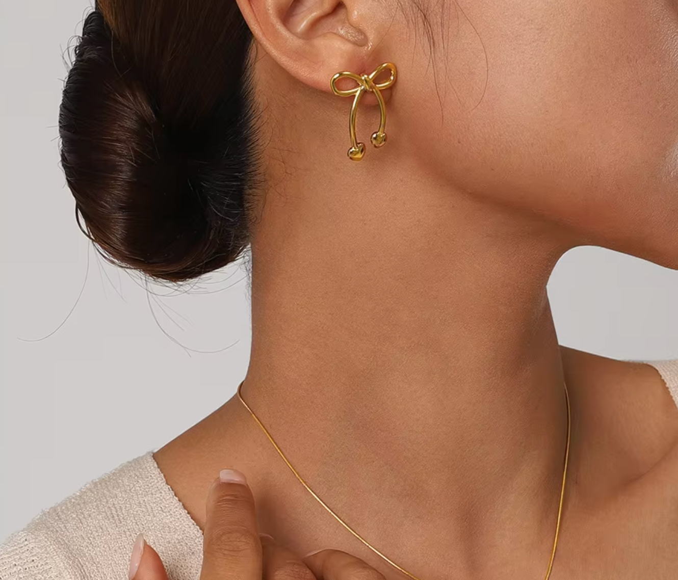 ステンレス304 低ニッケル 水に濡れても錆びにくい 18Kゴールドメッキ ピアス リボン 【YJ02076】