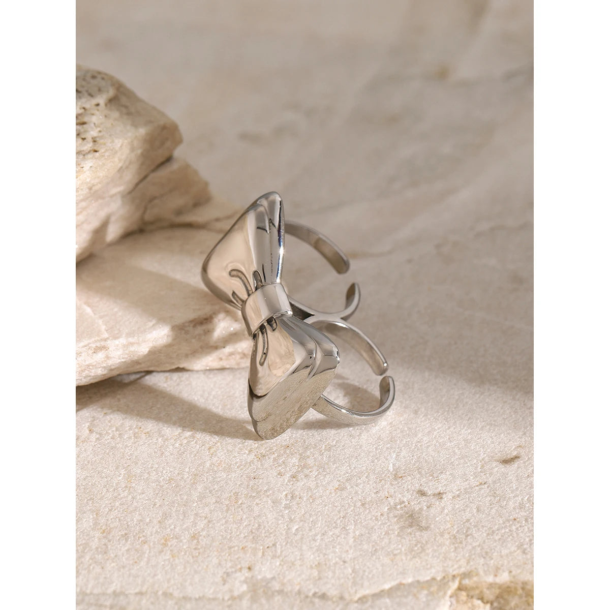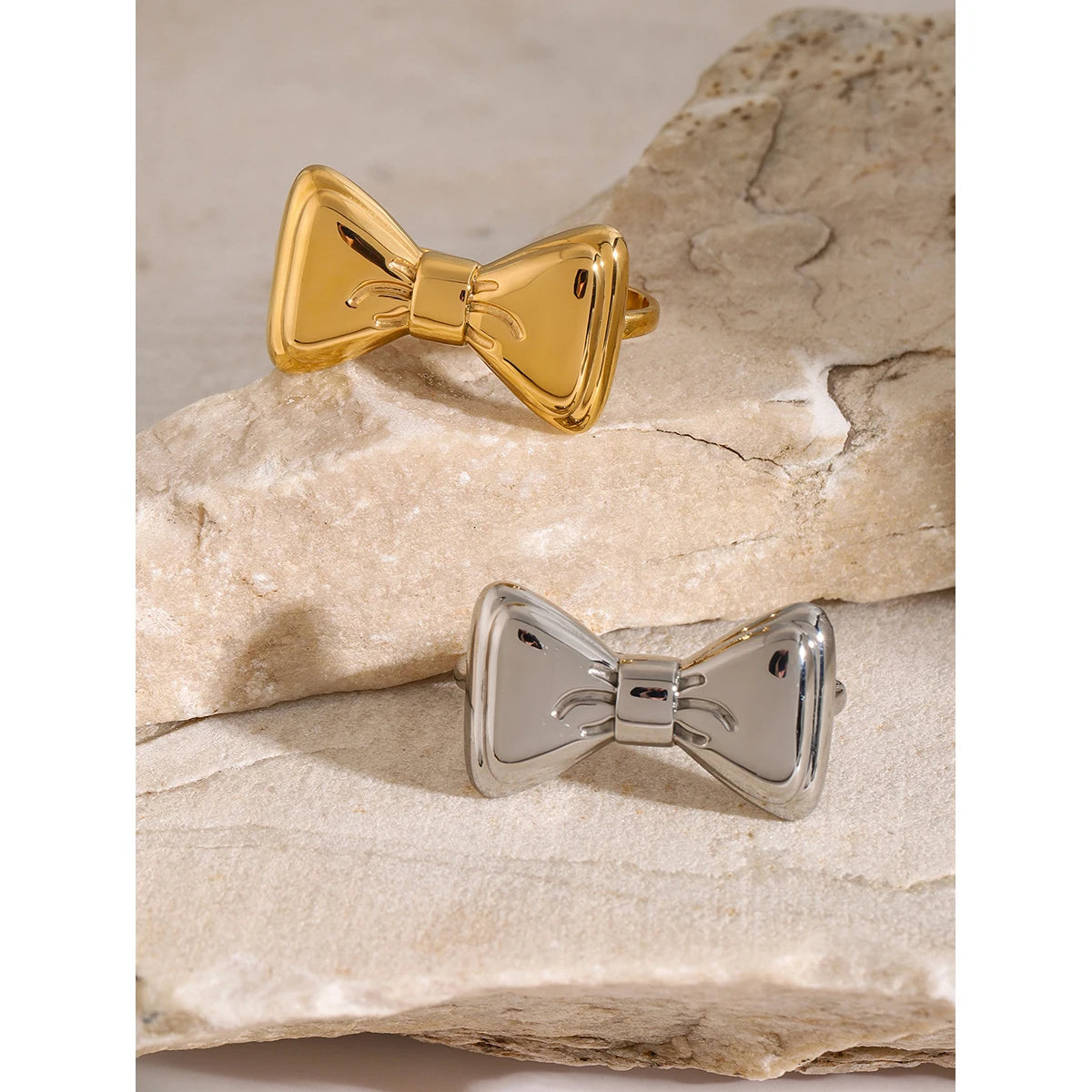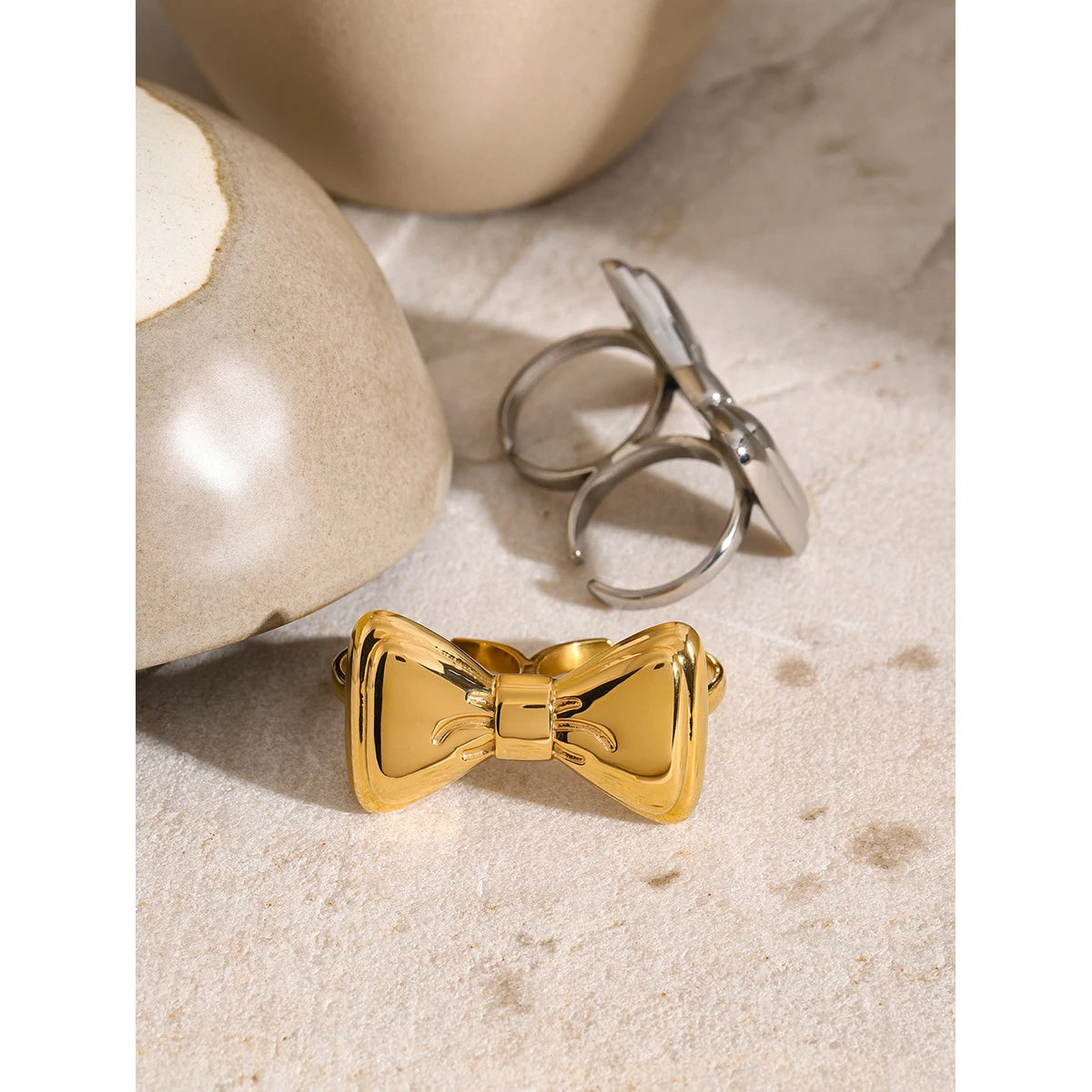 ステンレス304 低ニッケル 水に濡れても錆びにくい 18Kゴールドメッキ リング チャンキー リボン 2連【YJ02106】