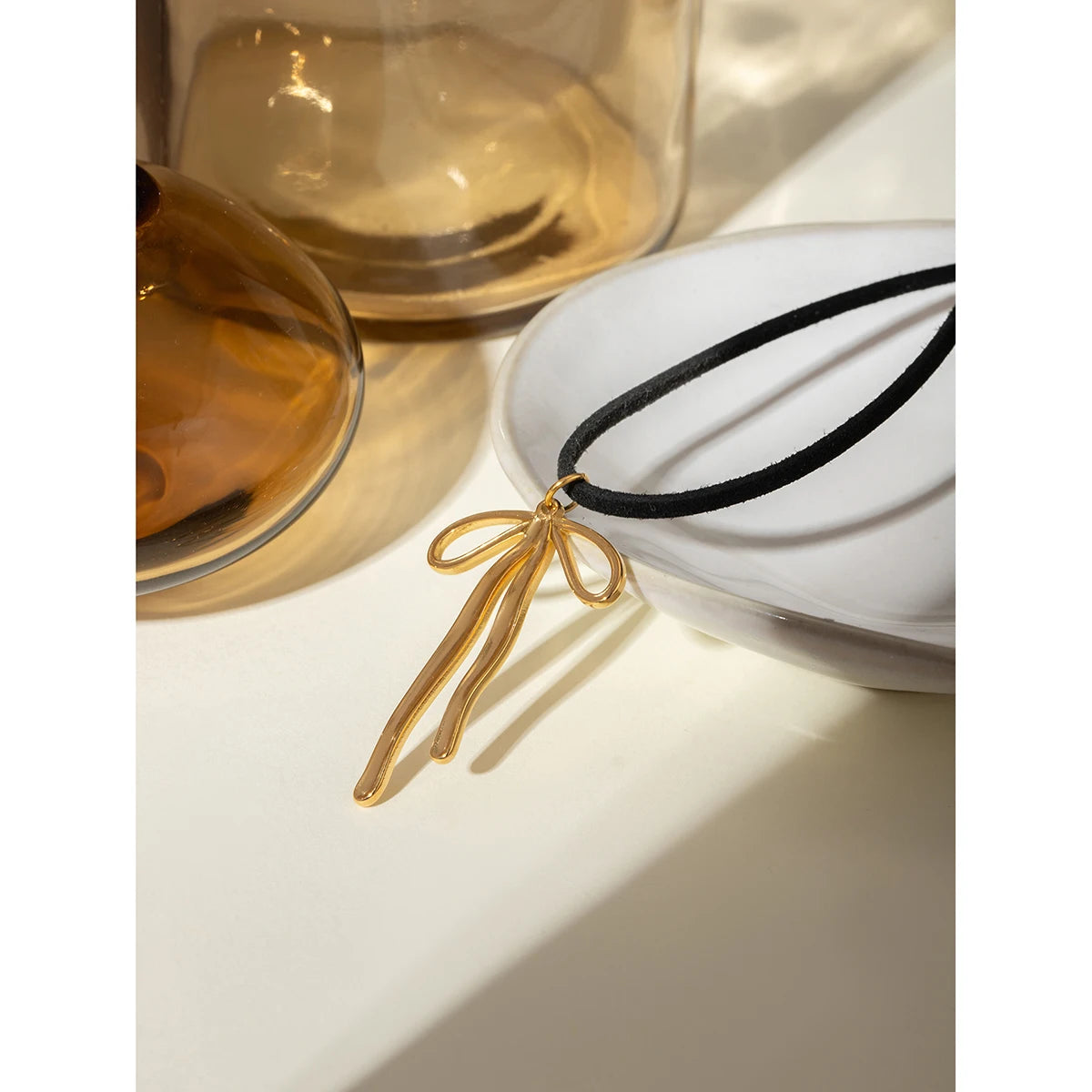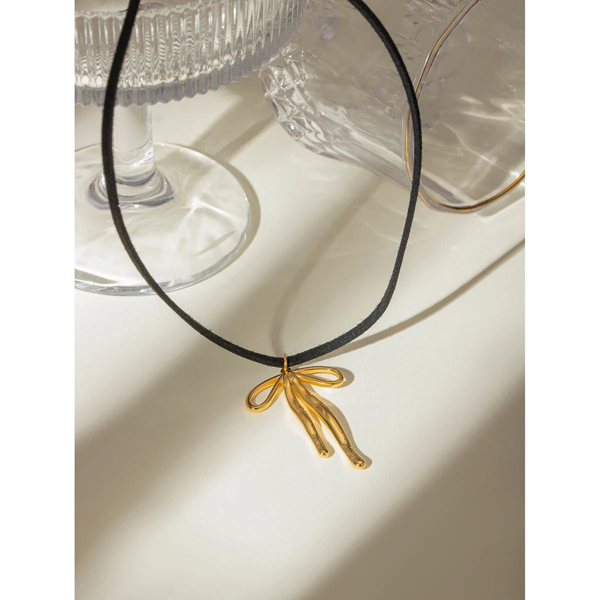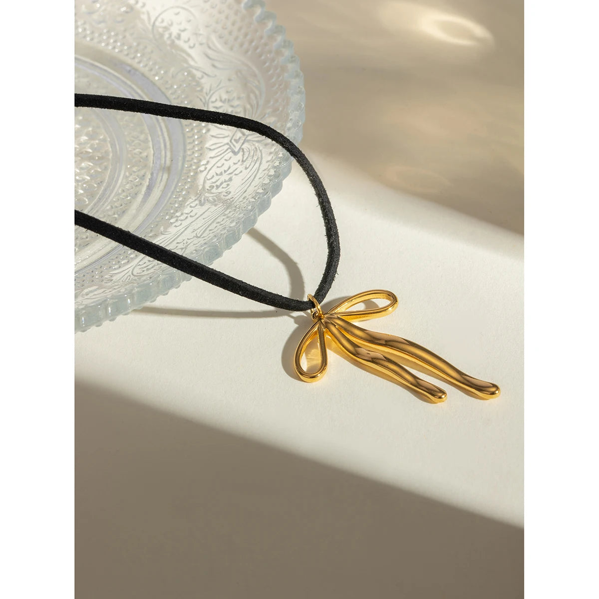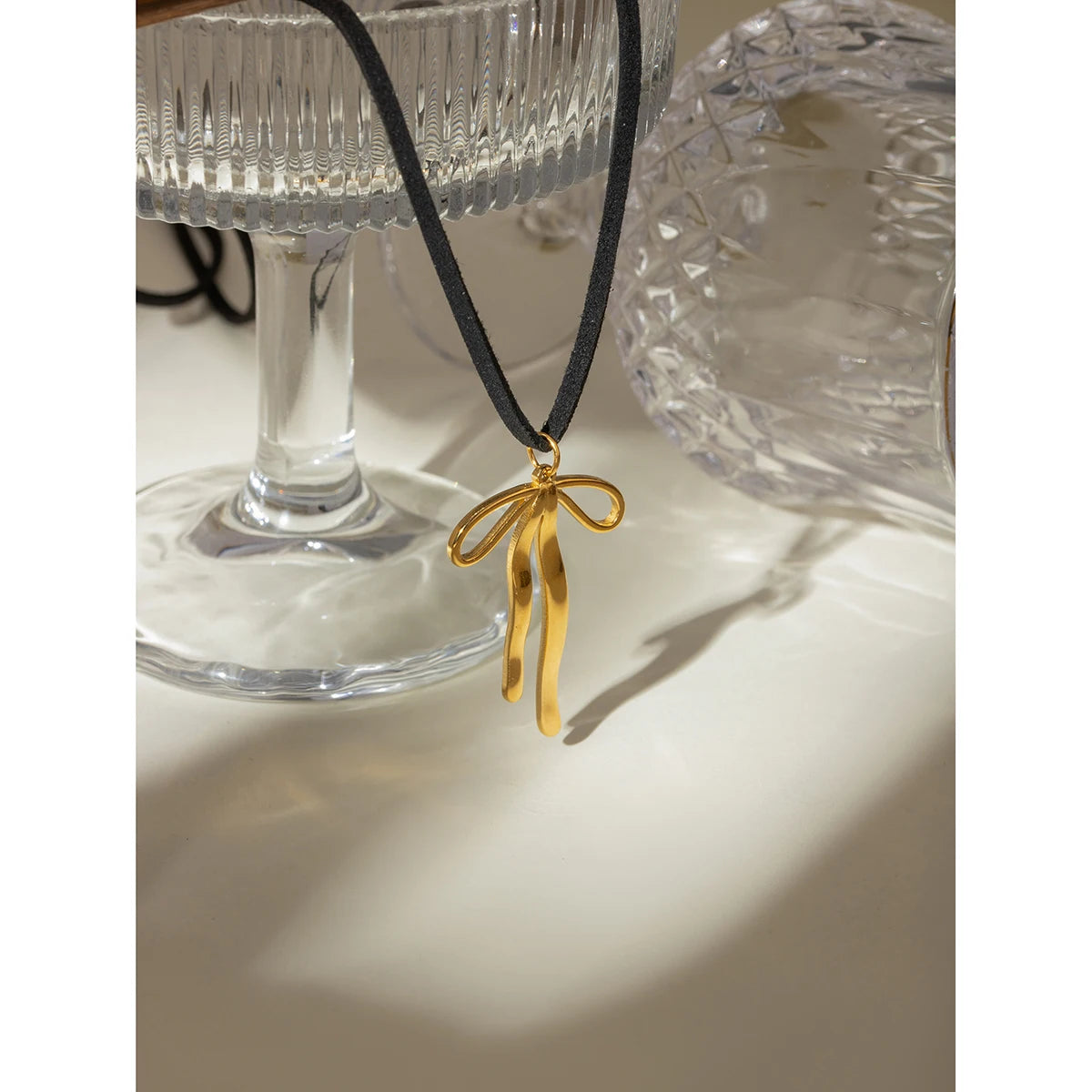 ステンレス304 低ニッケル 水に濡れても錆びにくい 18Kゴールドメッキ ネックレス リボン 【YJ02108】