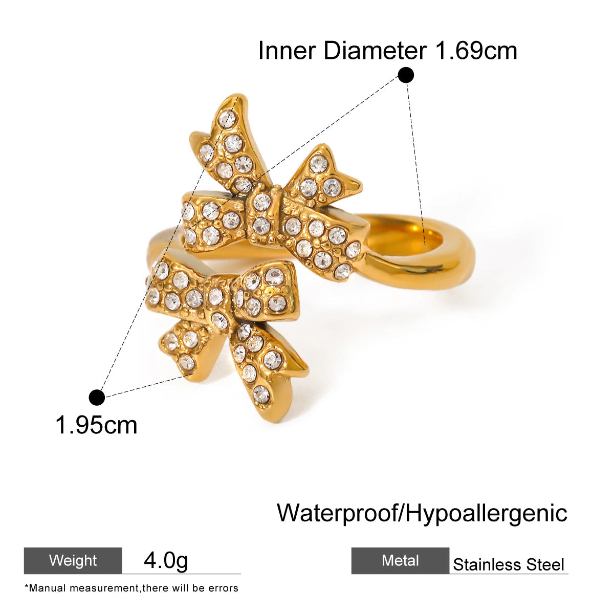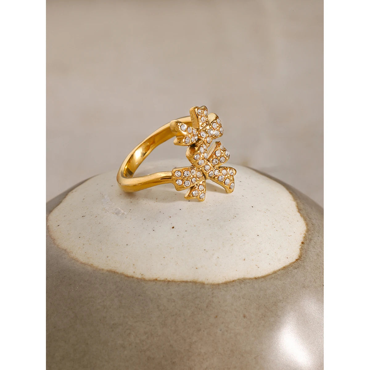 ステンレス304 低ニッケル 水に濡れても錆びにくい 18Kゴールドメッキ リング リボン 【YJ02110】