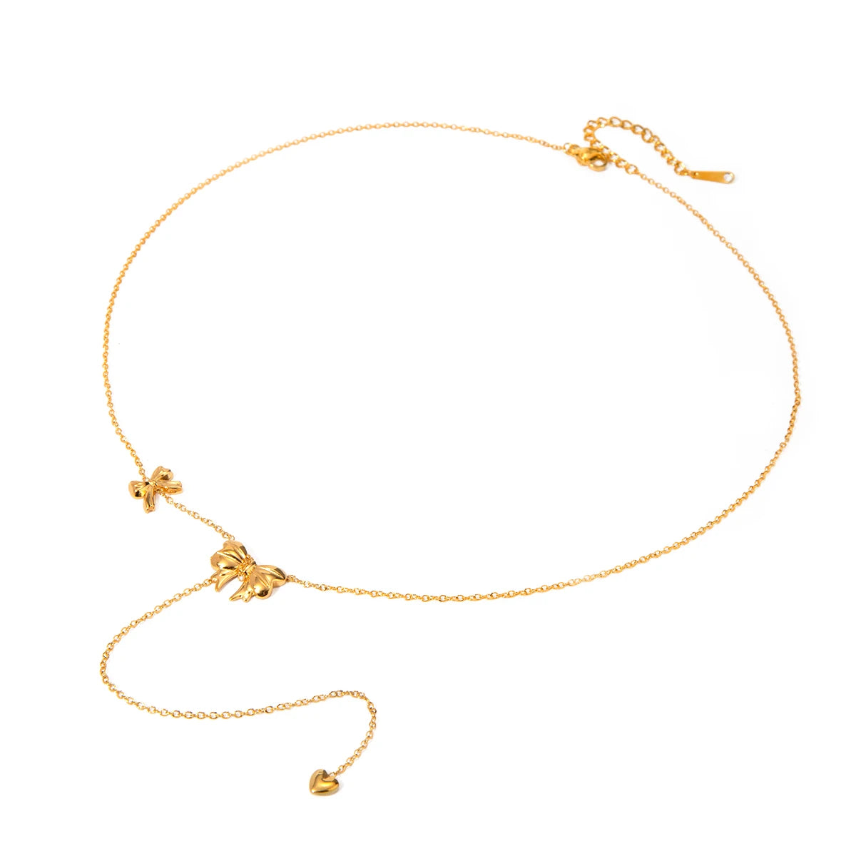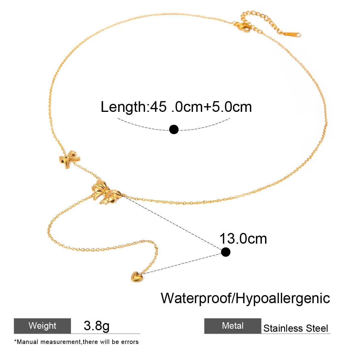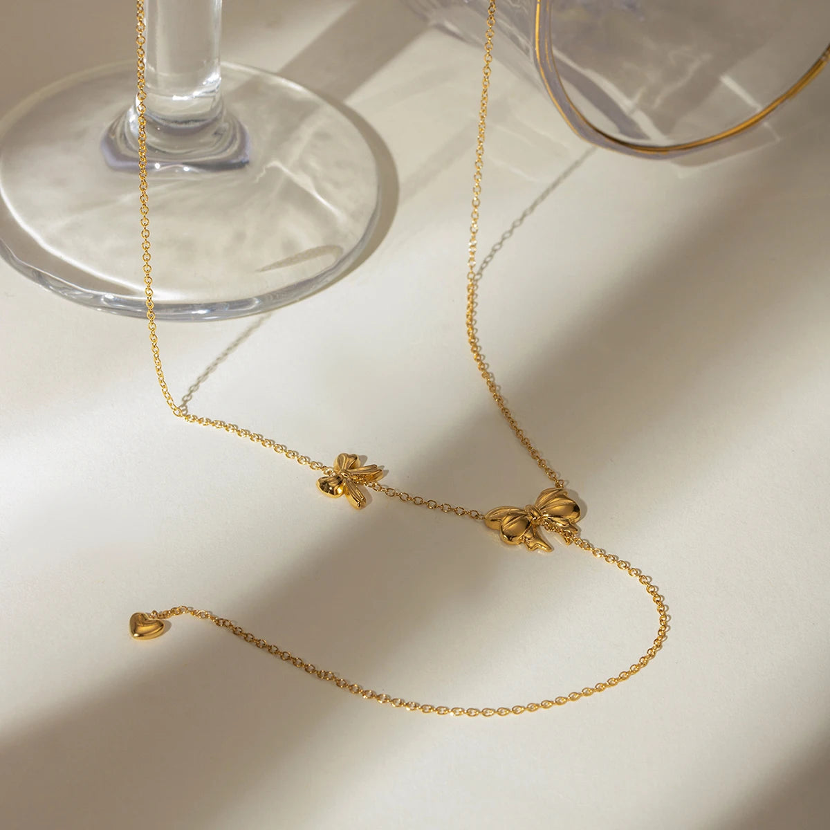 ステンレス304 低ニッケル 水に濡れても錆びにくい 18Kゴールドメッキ ネックレス リボン 【YJ02127】