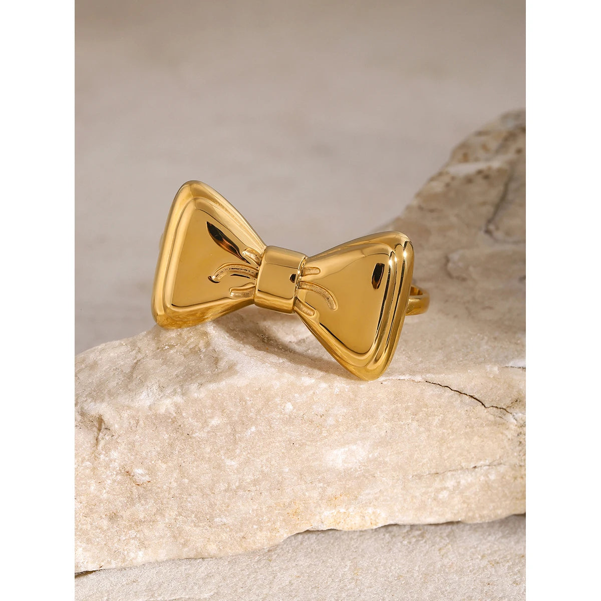 ステンレス304 低ニッケル 水に濡れても錆びにくい 18Kゴールドメッキ リング リボン 【YJ02153】